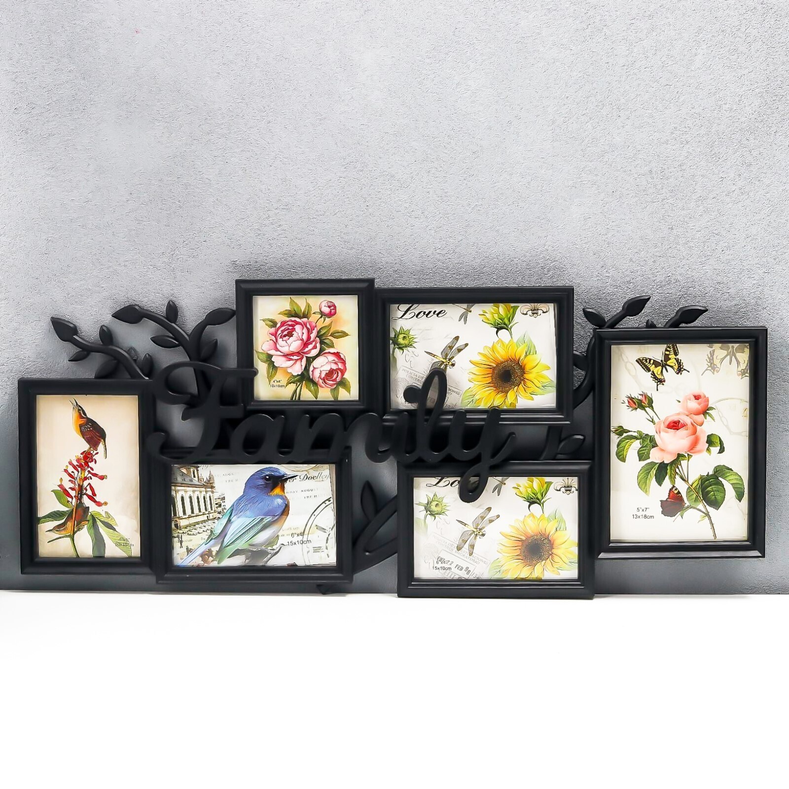 Фоторамка пластик на 6 фото"Фамильные ценности" (10х10, 10х15, 12х17 см) черная 62,5х27 см 11