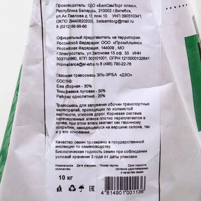 Газонная травосмесь "Для залуживания откосов (ДЗО)10 кг