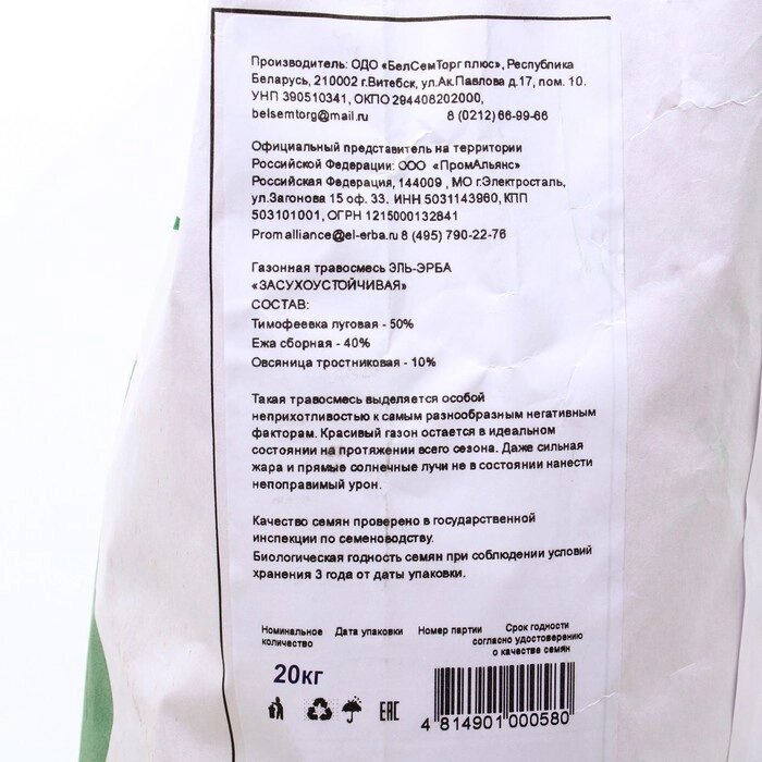 Газонная травосмесь "Засухоустойчивая"20 кг