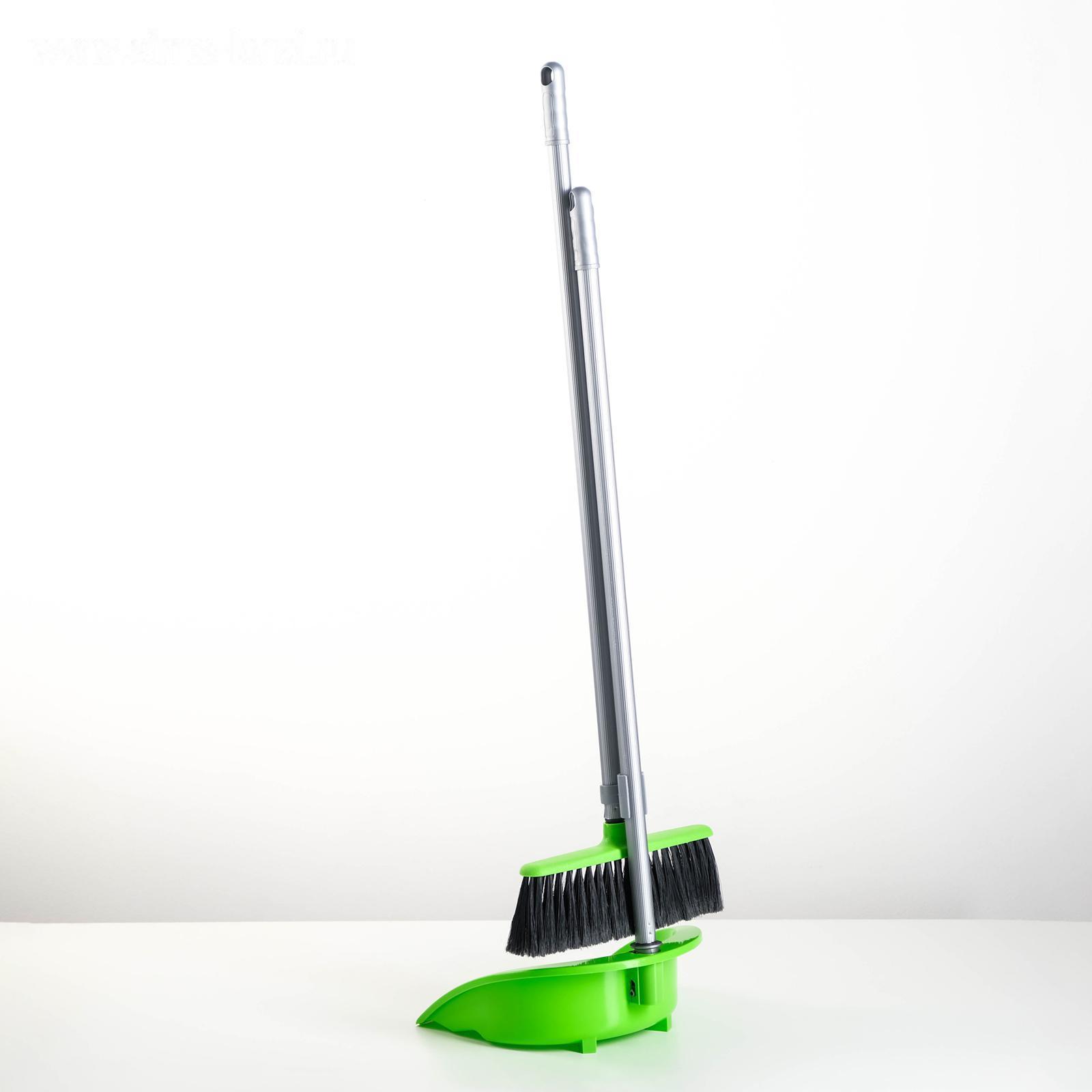 Щётка для пола с совком «Ленивка. Люкс», цвет зелёный