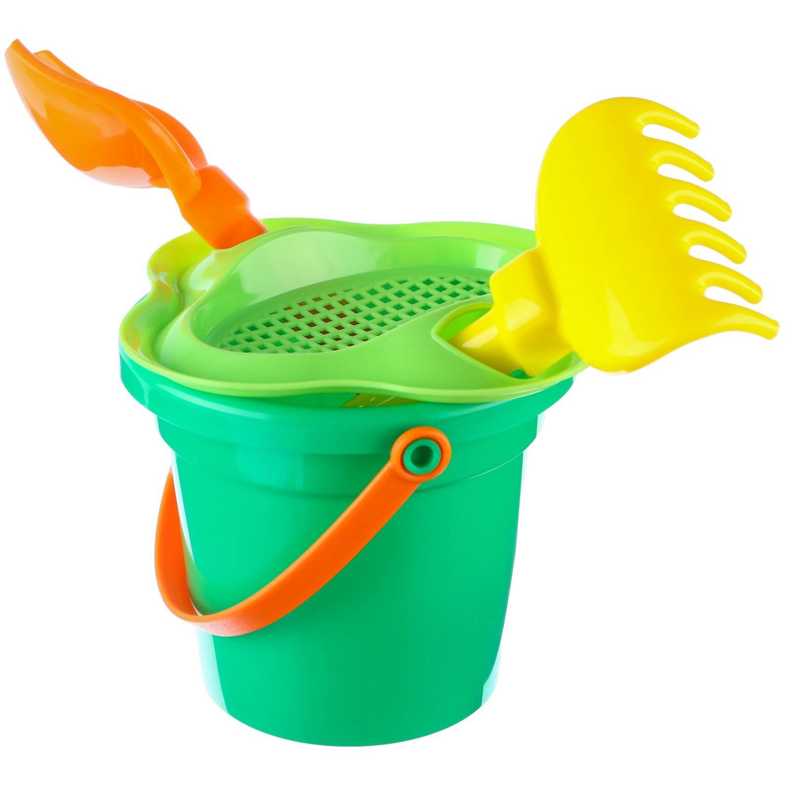 Набор для игры в песке: ведро, сетка, лопата, грабли, 2 формочки МИКС