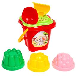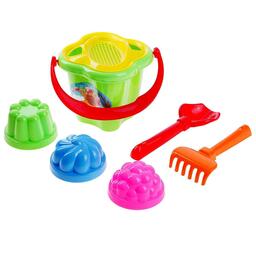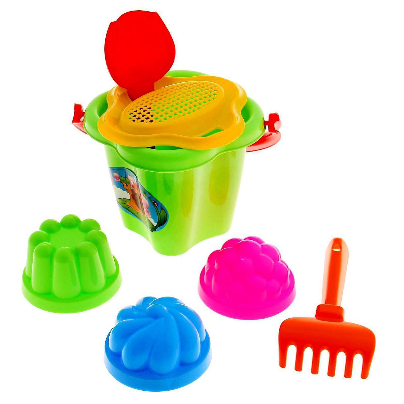 Набор песочный №21: ведро, ситечко-цветок, совок, грабельки, формочки, цвета МИКС