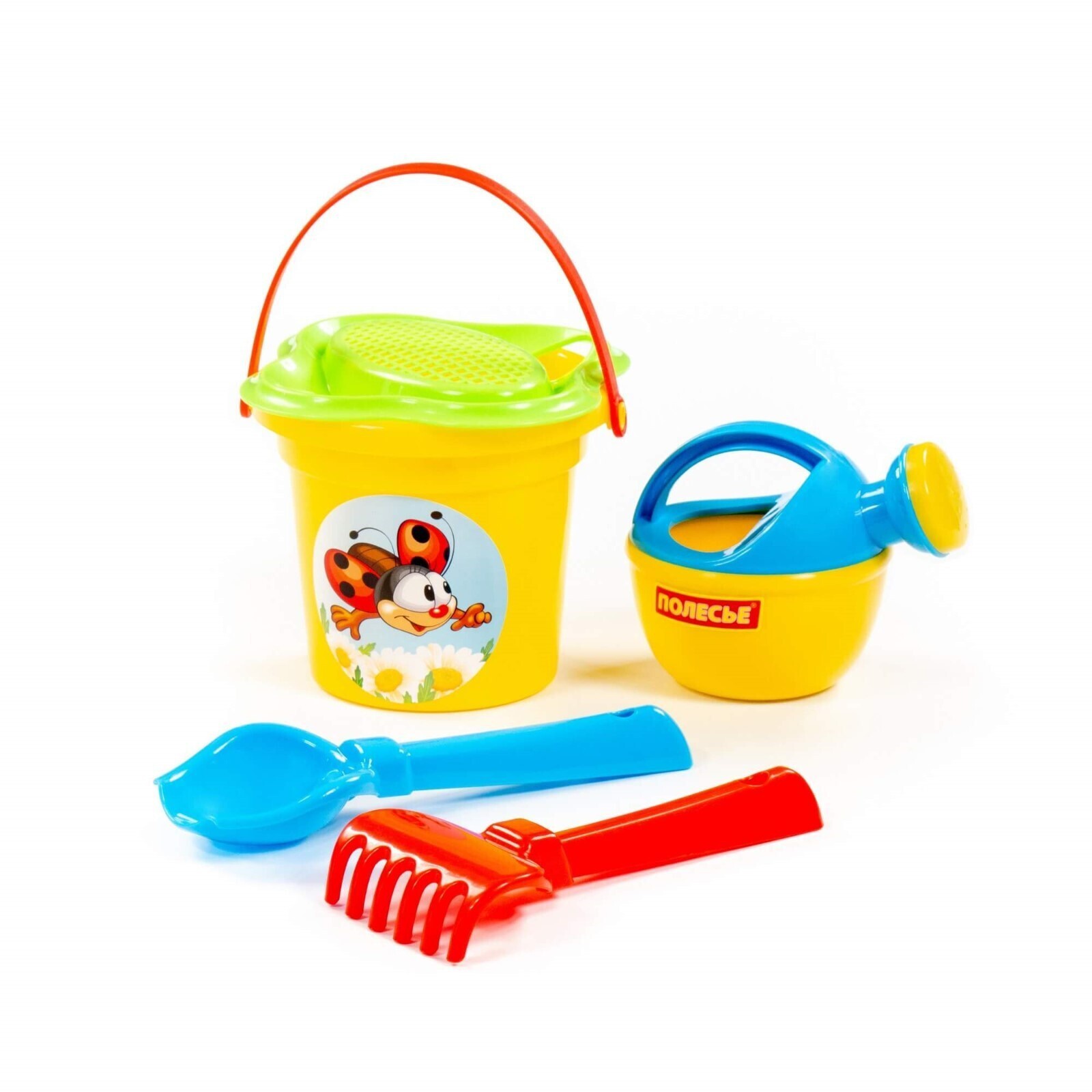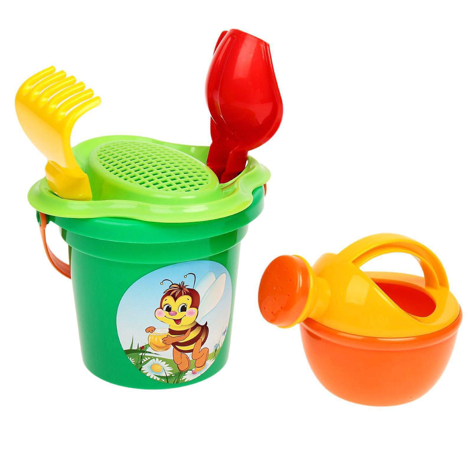 Песочный набор № 240: ведро малое, ситечко-цветок, совок, грабельки, лейка малая, цвета МИКС