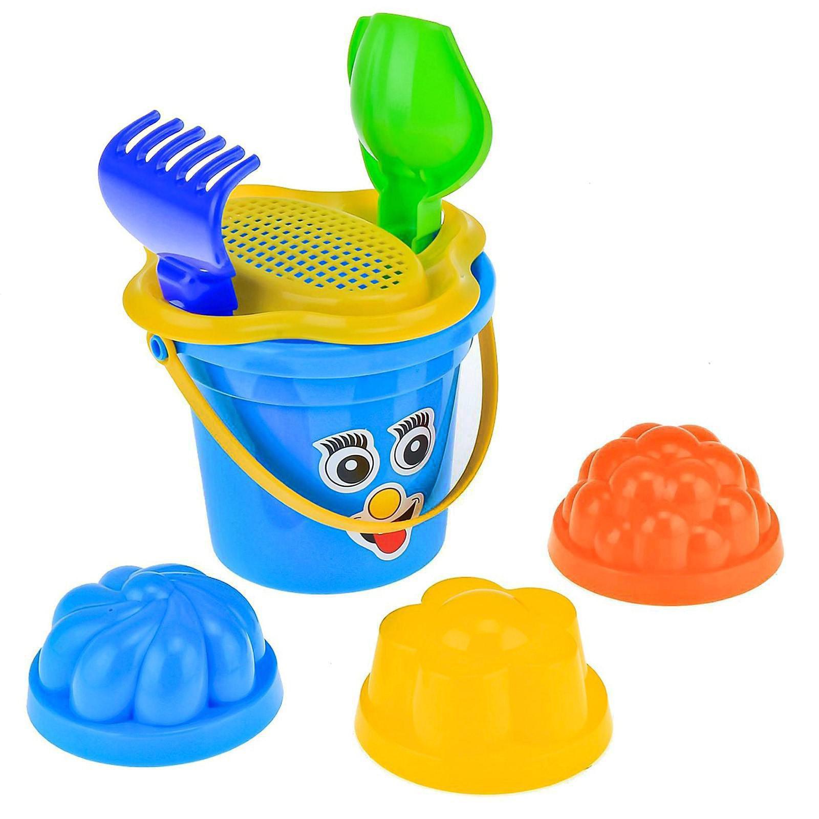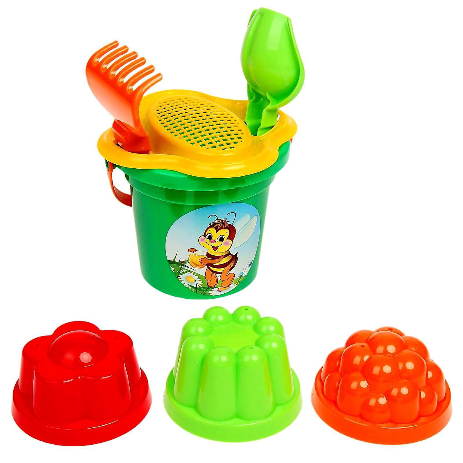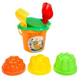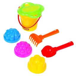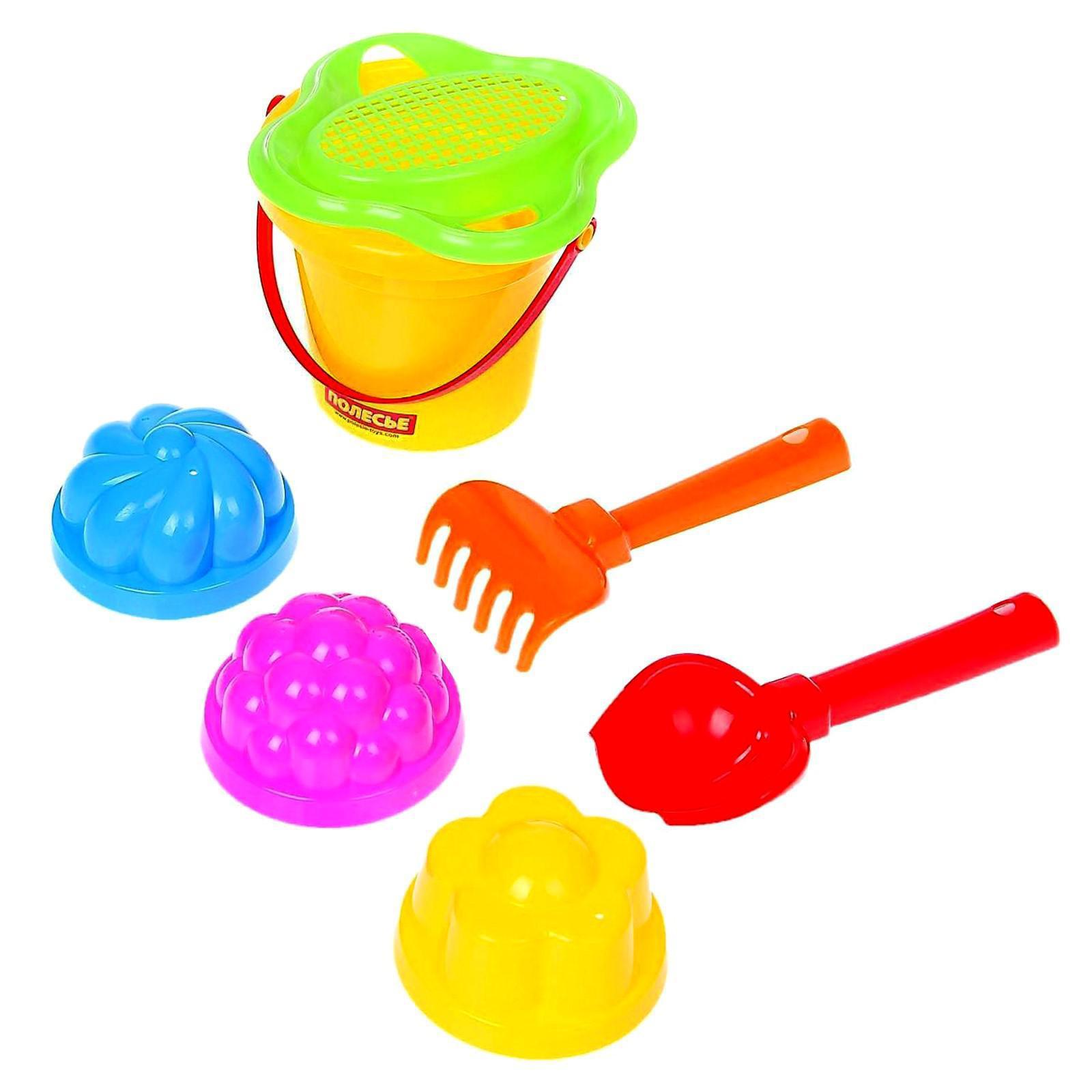 Песочный набор №26: ведро малое 0,53 л, ситечко-цветок, совок, грабельки, 3 формочки для песка, цвета МИКС