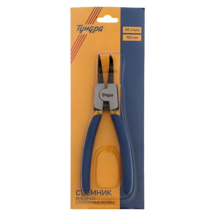 Съемник внешних стопорных колец ТУНДРА, изогнутые губки на разжим, 150 мм