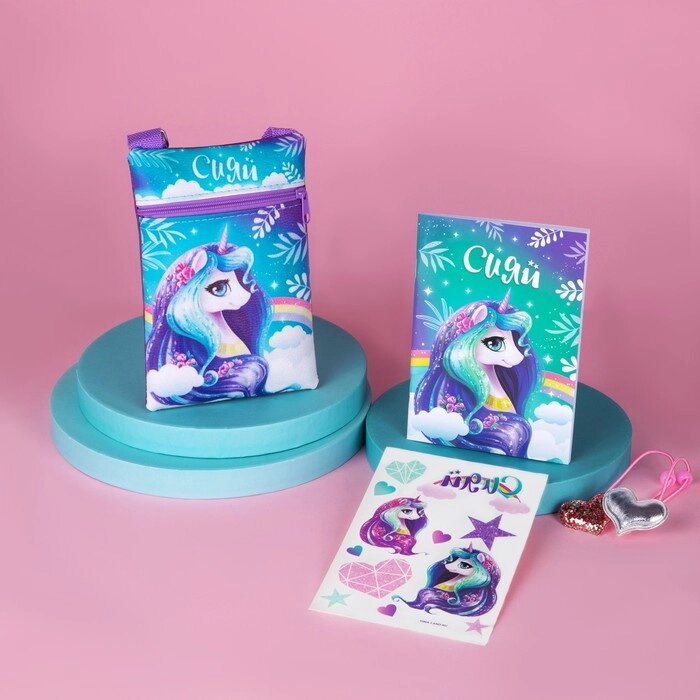 Детский подарочный набор "Сияй" 11*1*16 сумка+набор резинок+блокнот+тату