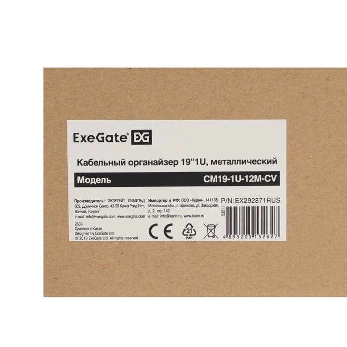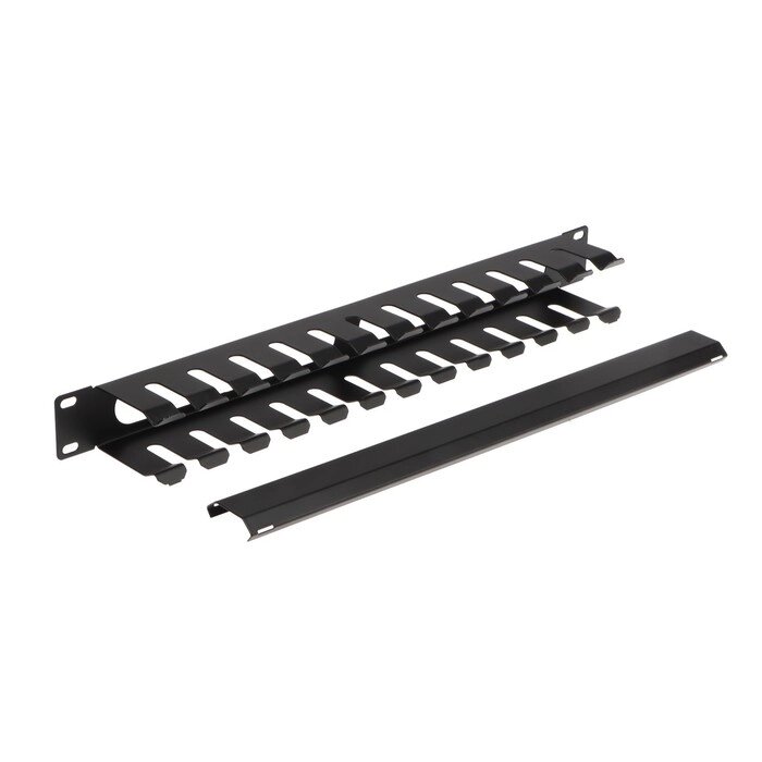 Кабельный органайзер для ПК ExeGate CM19-1U-12M-CV, 2 окна, 12 выходов, металл, чёрный