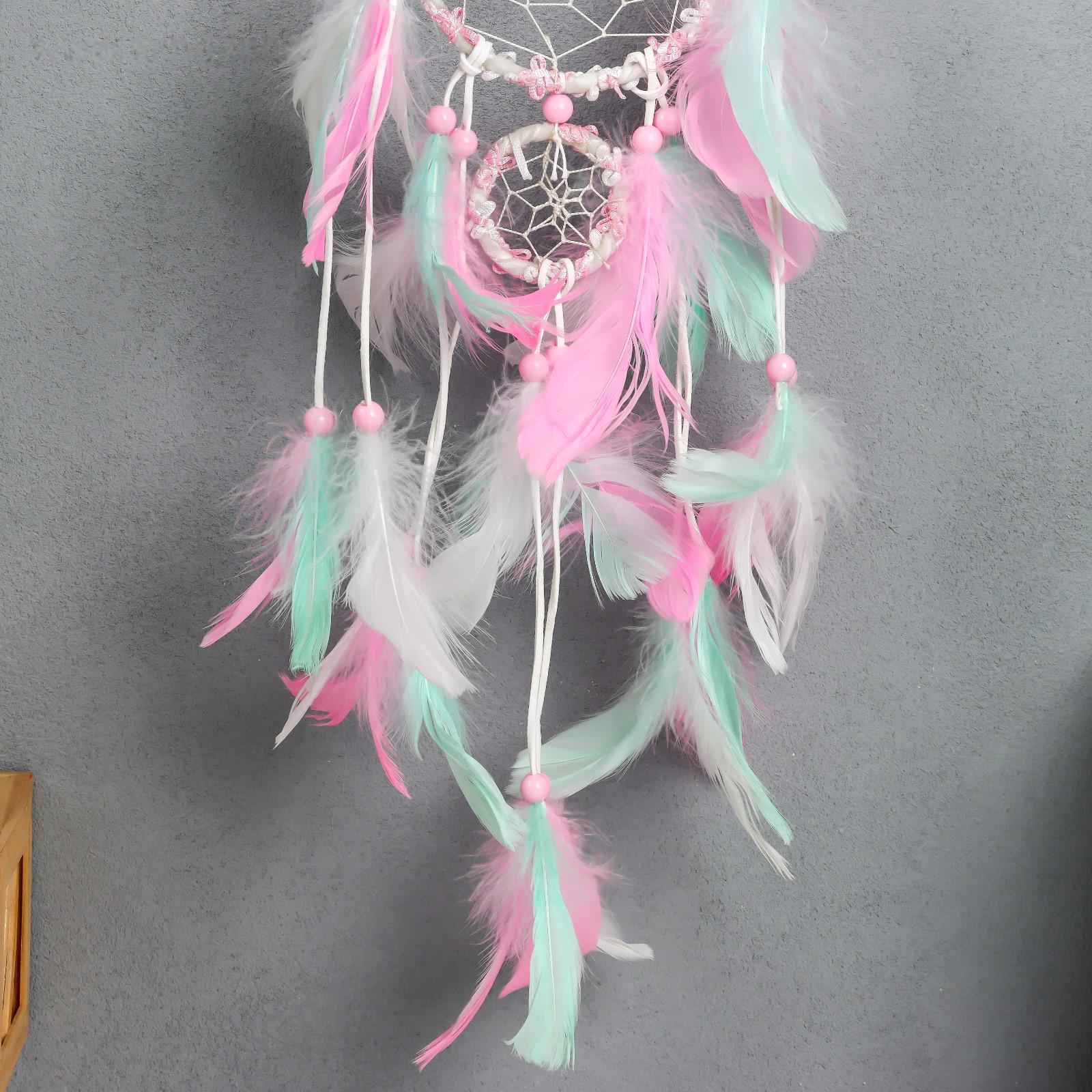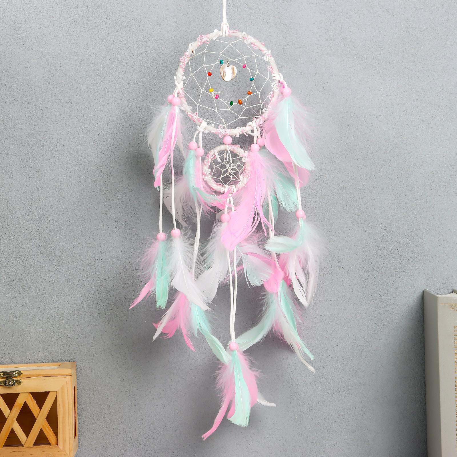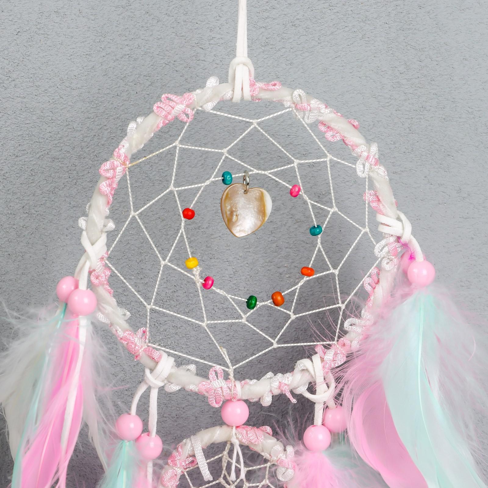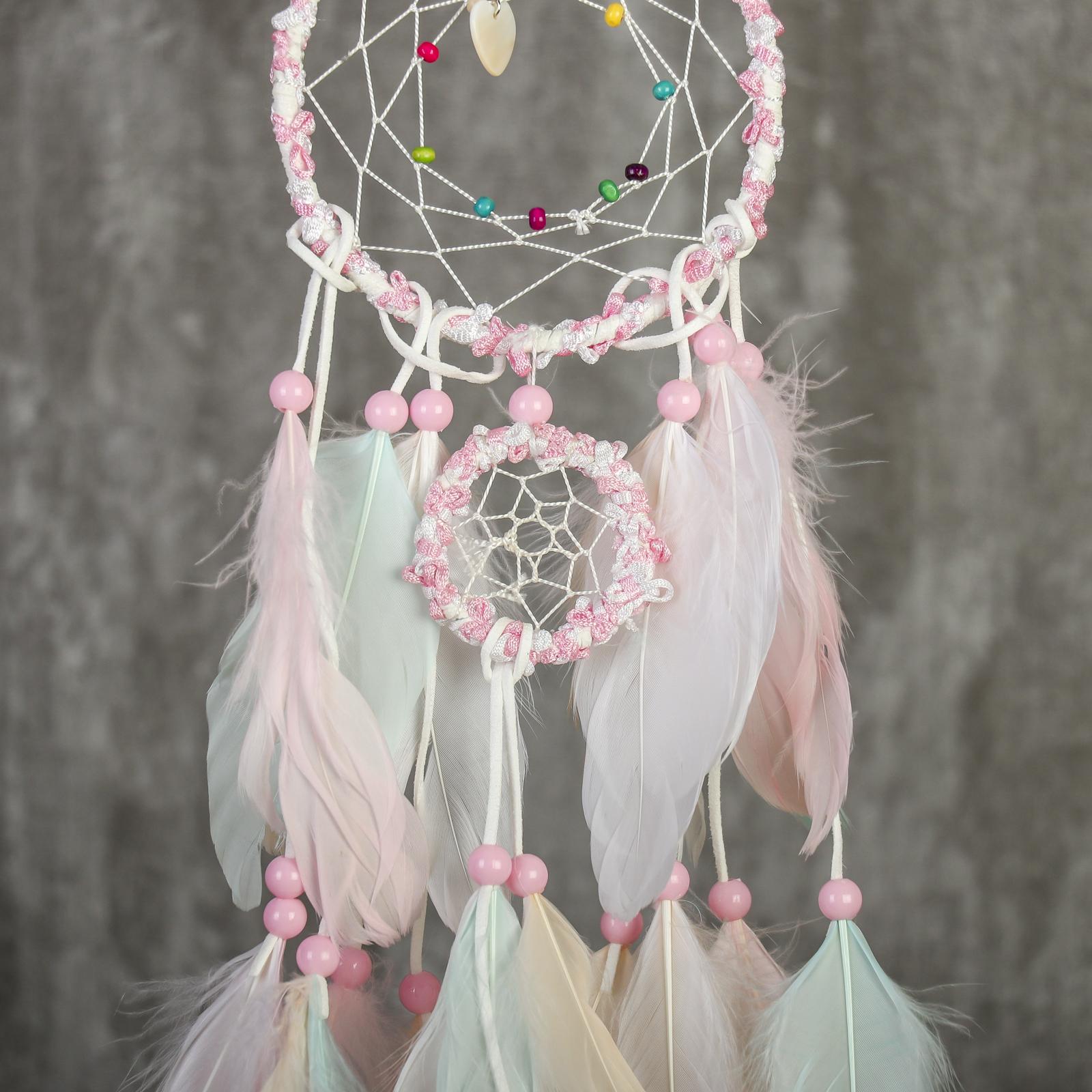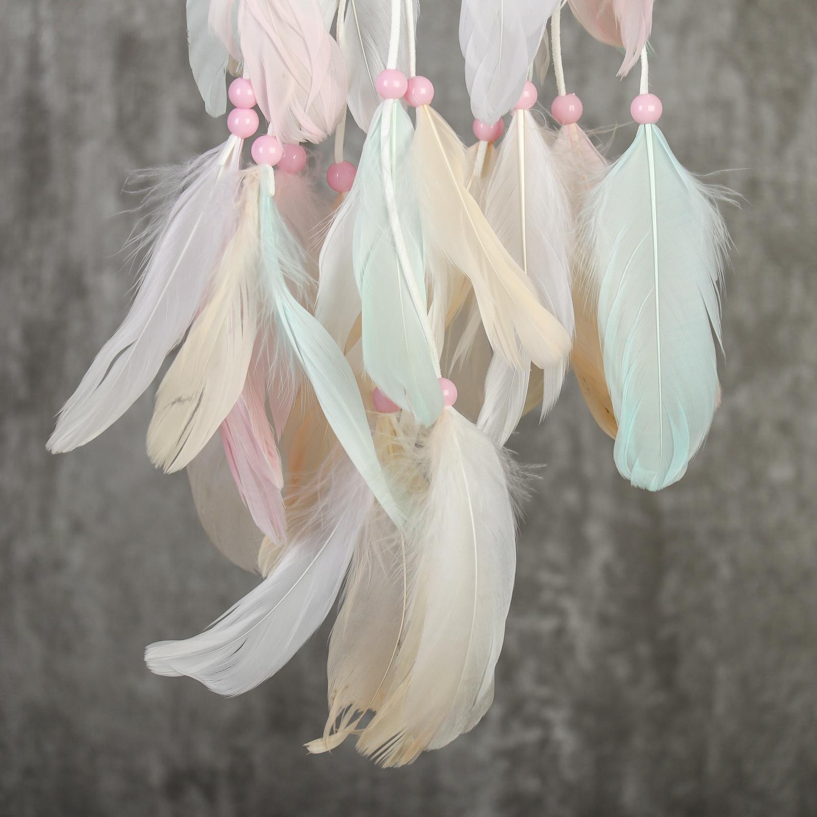 Ловец снов "Паутинка с пёрышками пастельных тонов" d=5 см, d=11,5 см длина 50 см