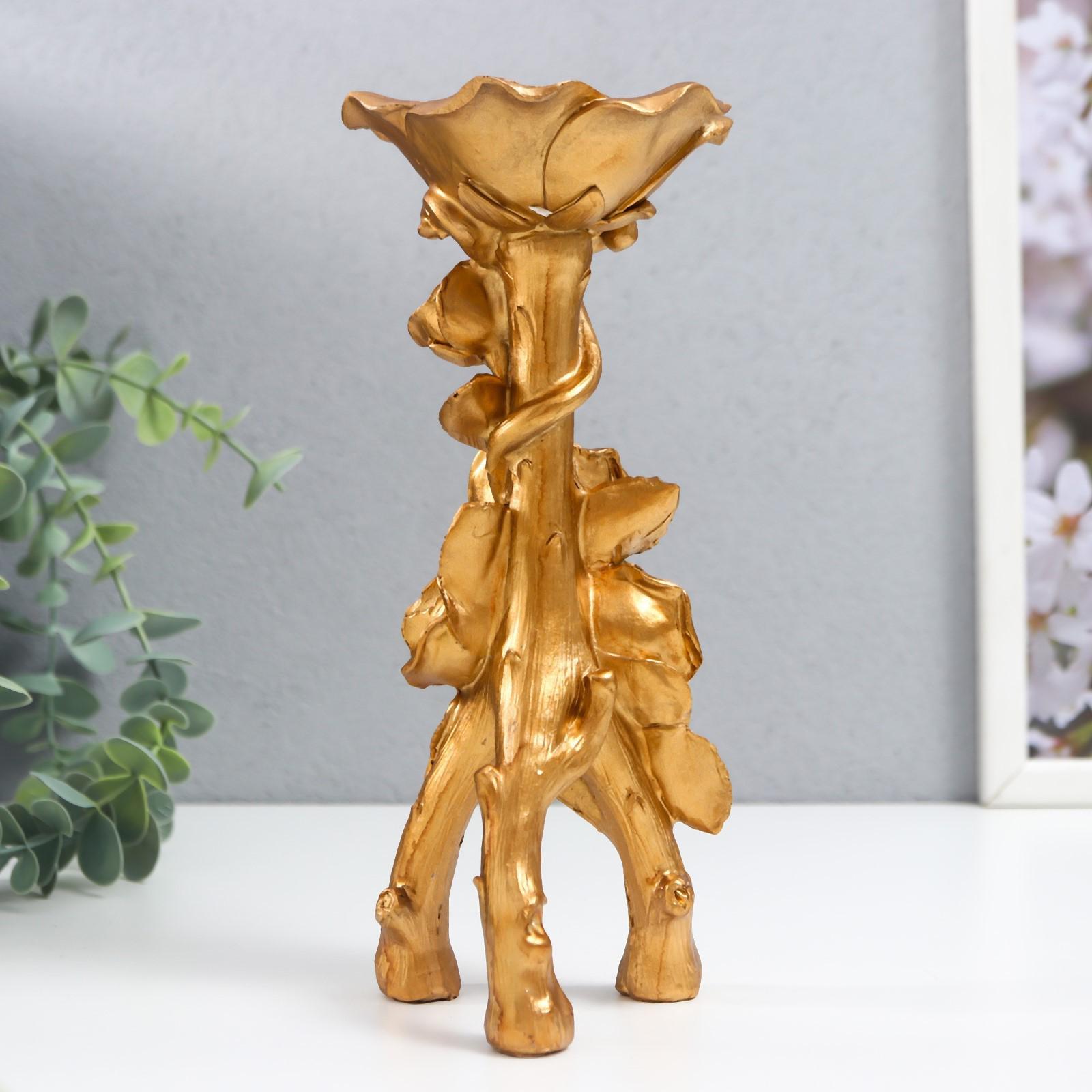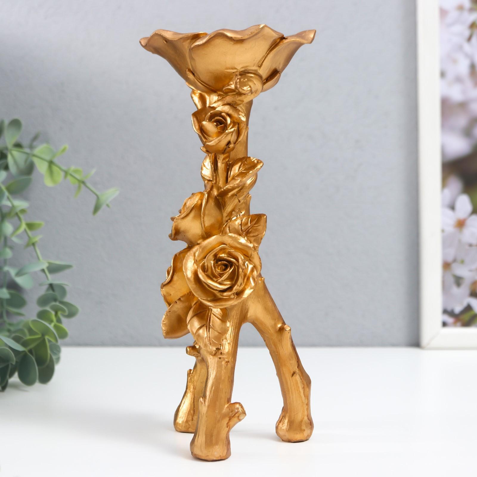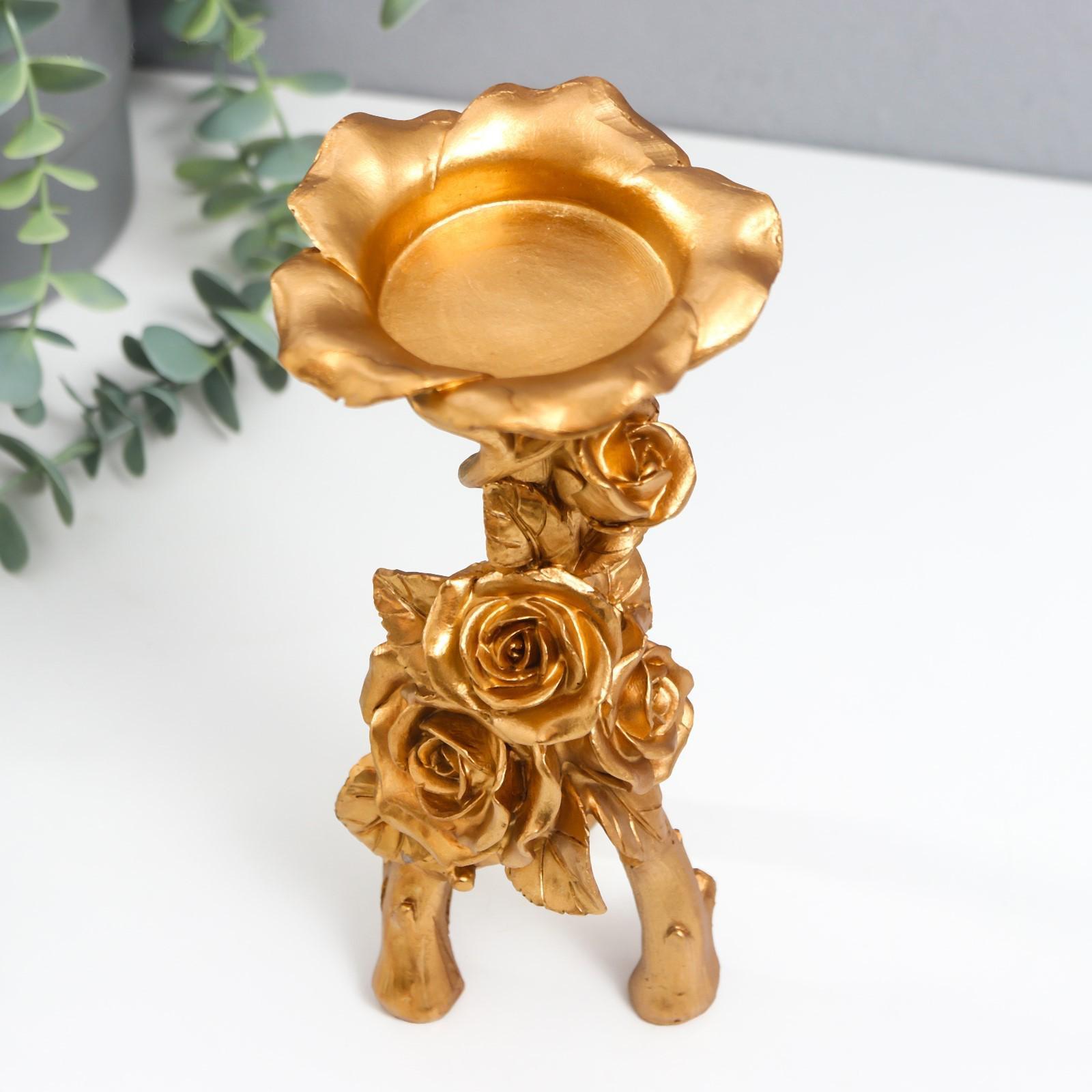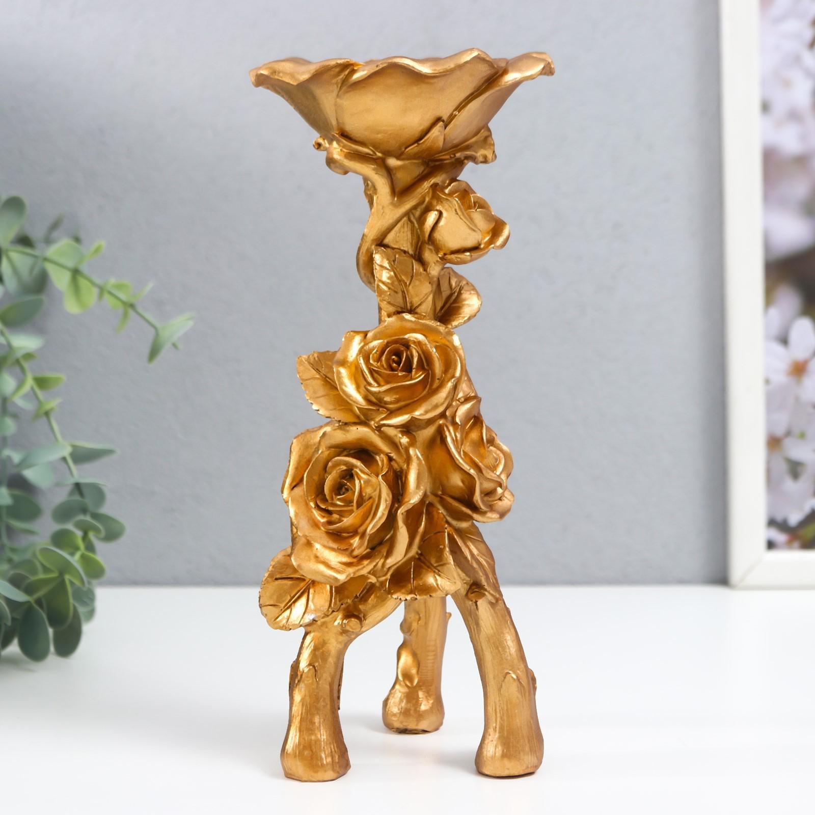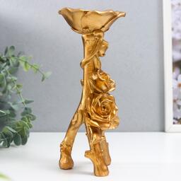 Подсвечник полистоун на 1 свечу "Розы. Тринога" золото 20,8х7,5х7,5 см