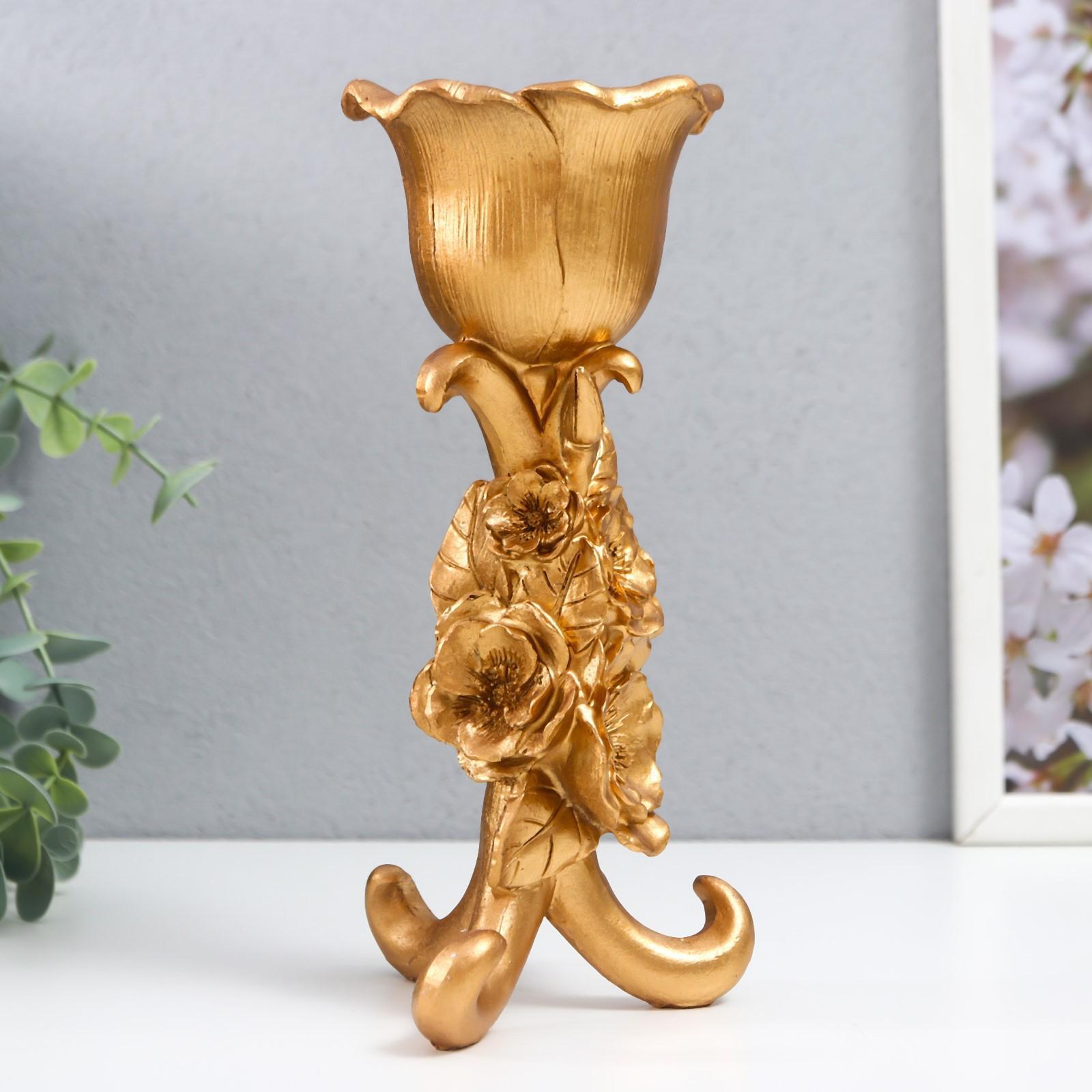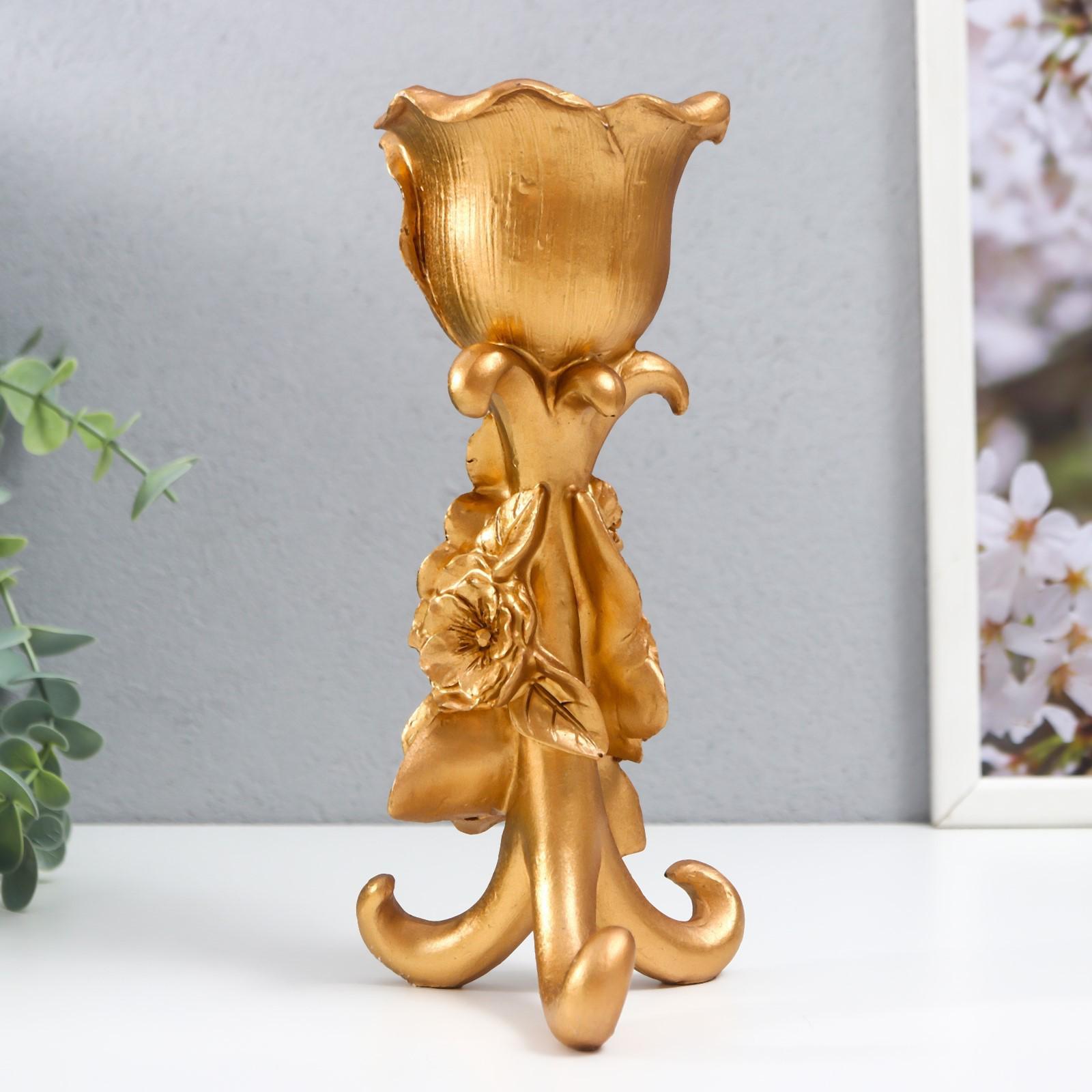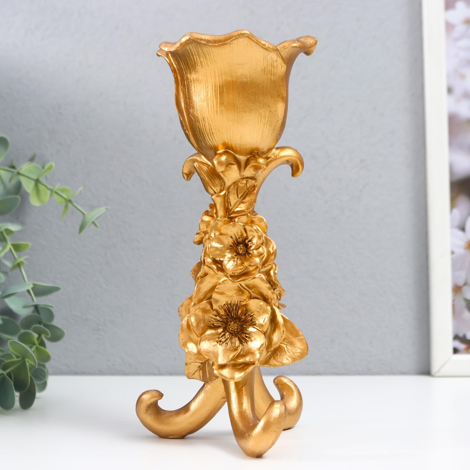 Подсвечник полистоун на 1 свечу "Цветочная тринога" золото 21х9,5х9,5 см