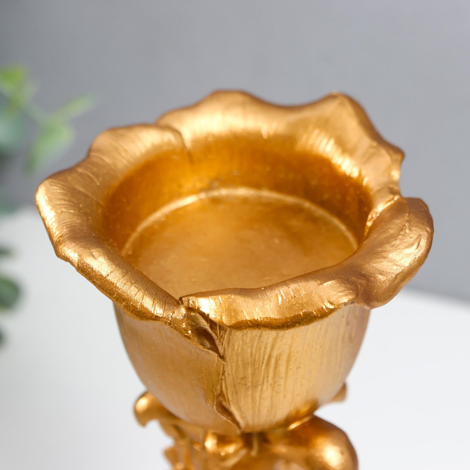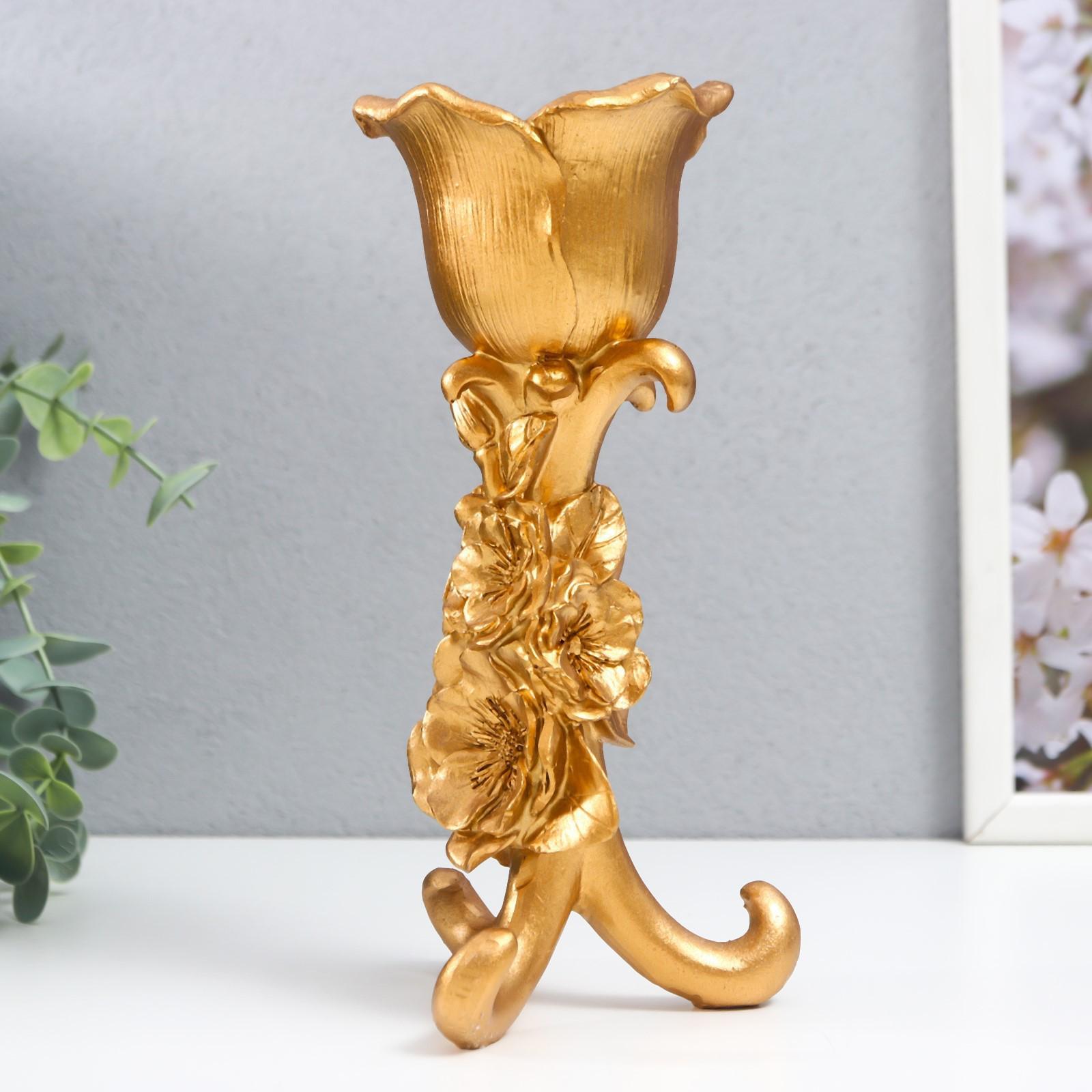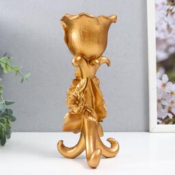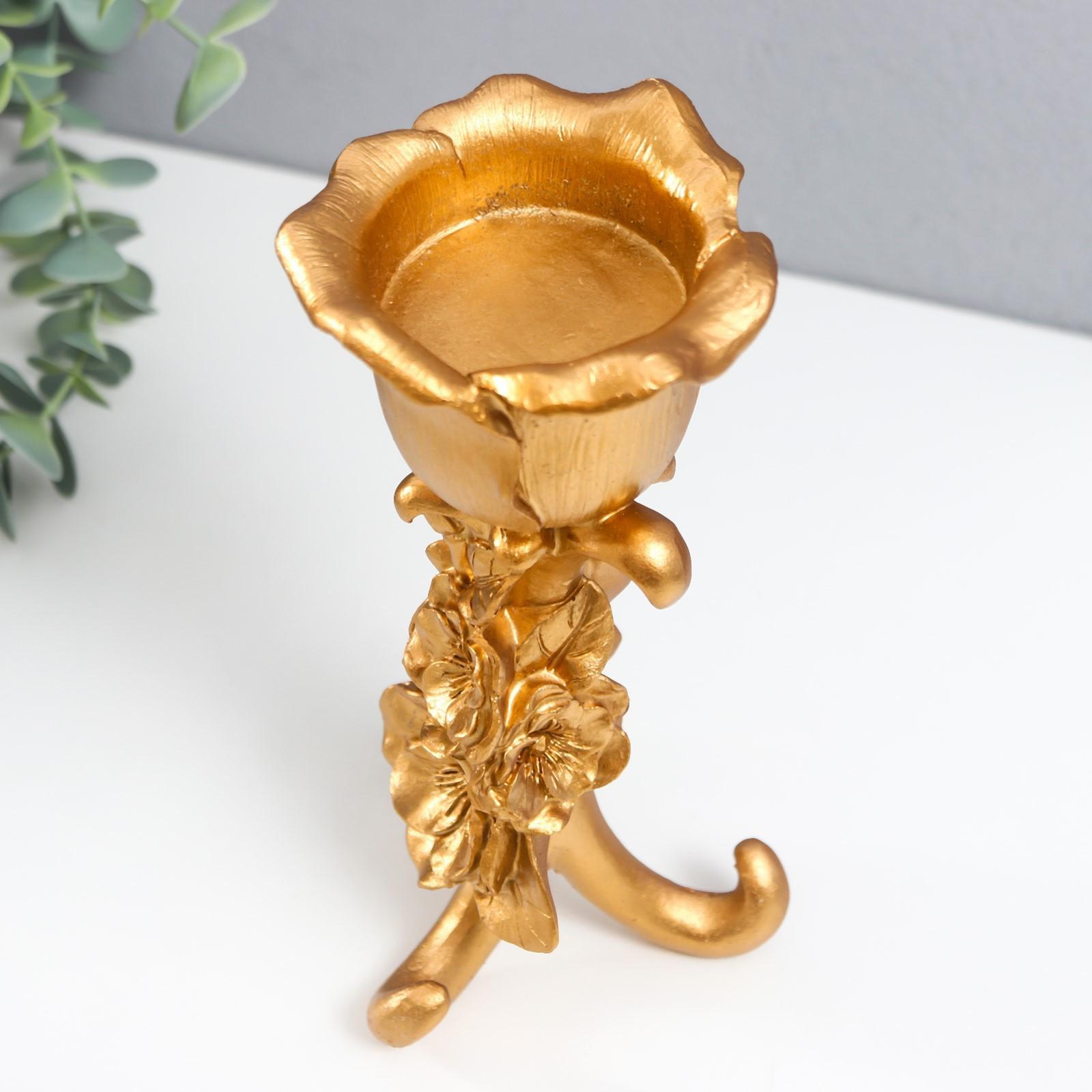 Подсвечник полистоун на 1 свечу "Цветочная тринога" золото 21х9,5х9,5 см