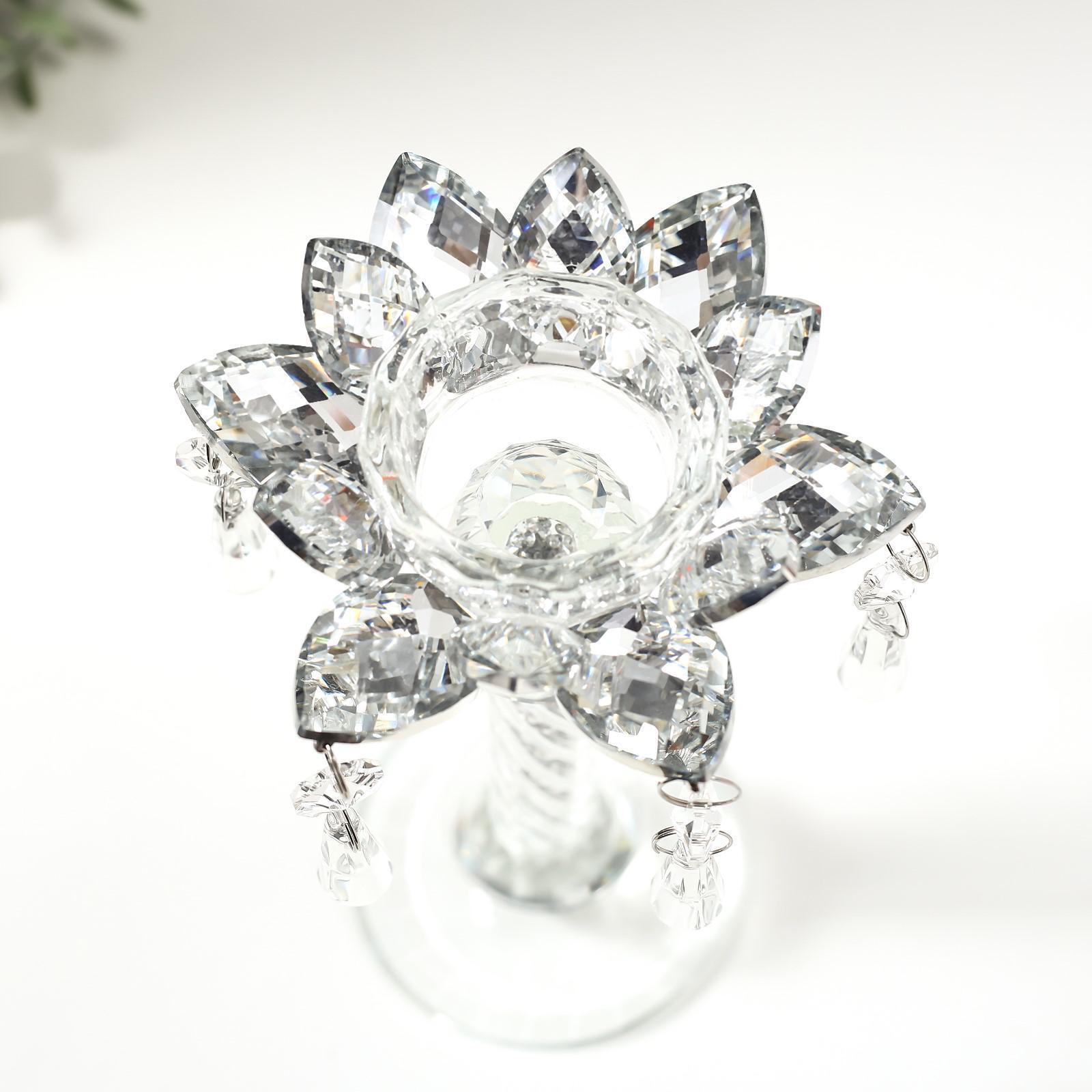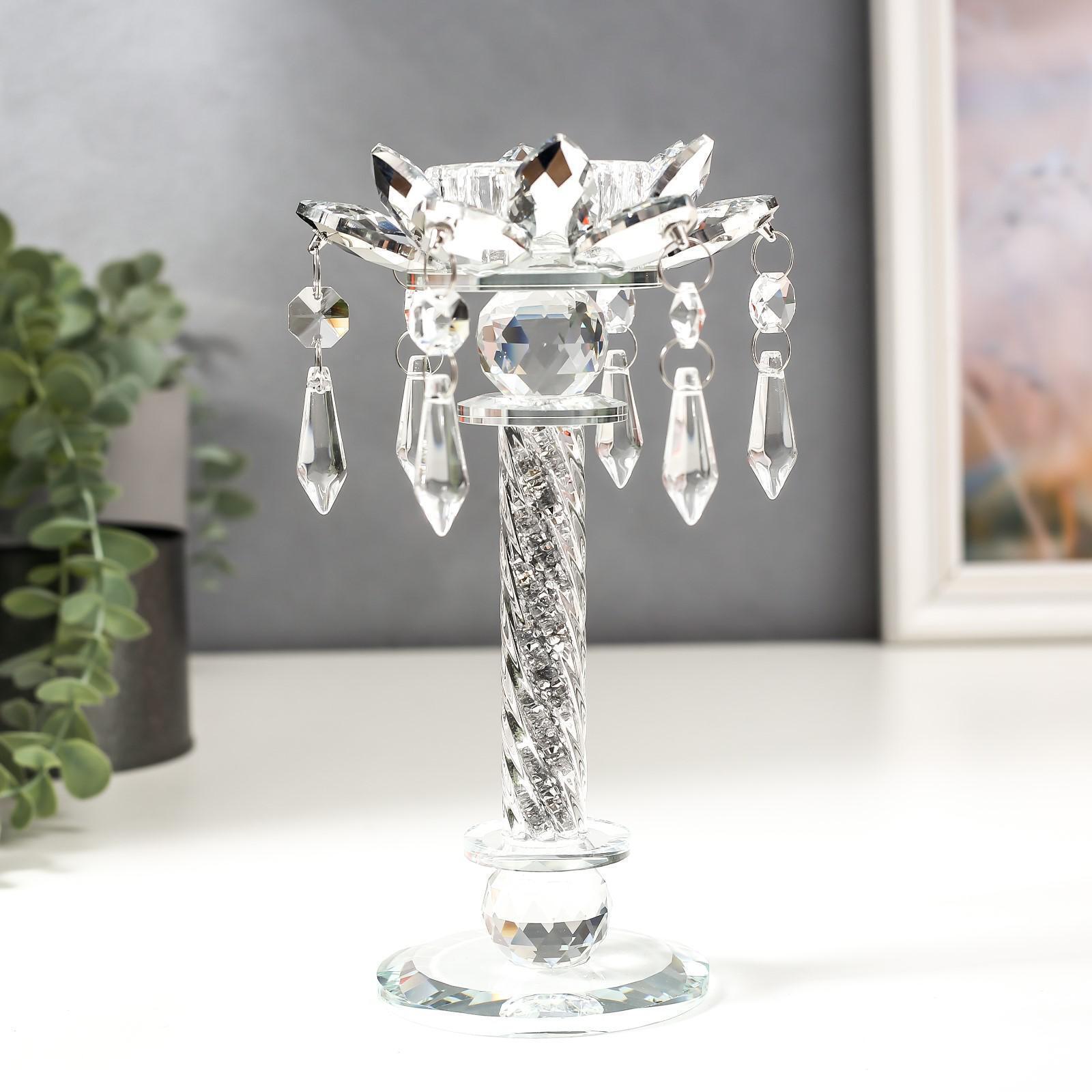 Подсвечник стекло на 1 свечу "Лотос на пьедестале" прозрачный 22,3х10,5х10,5 см