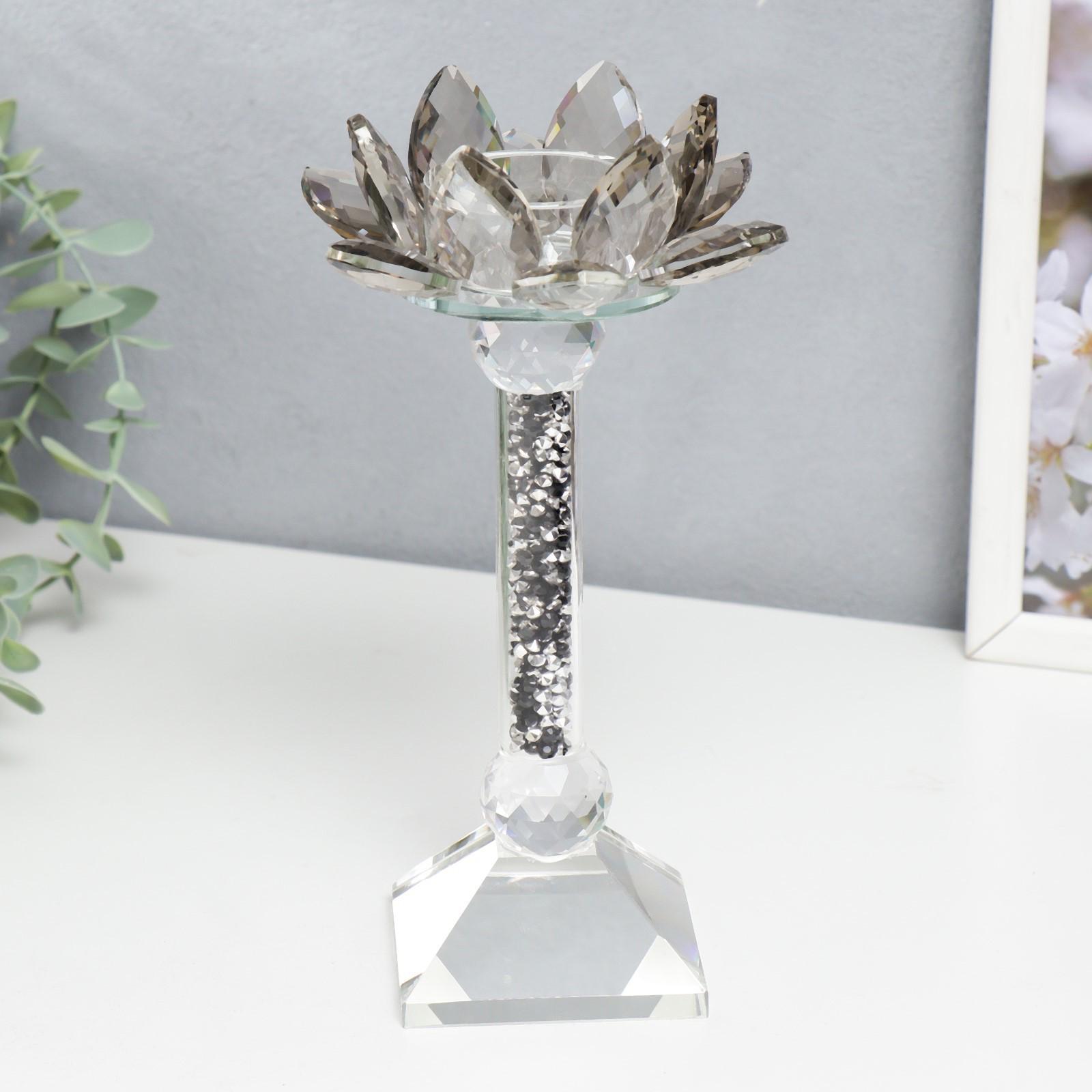 Подсвечник стекло на 1 свечу "Лотос с камешками" 22х12х12 см