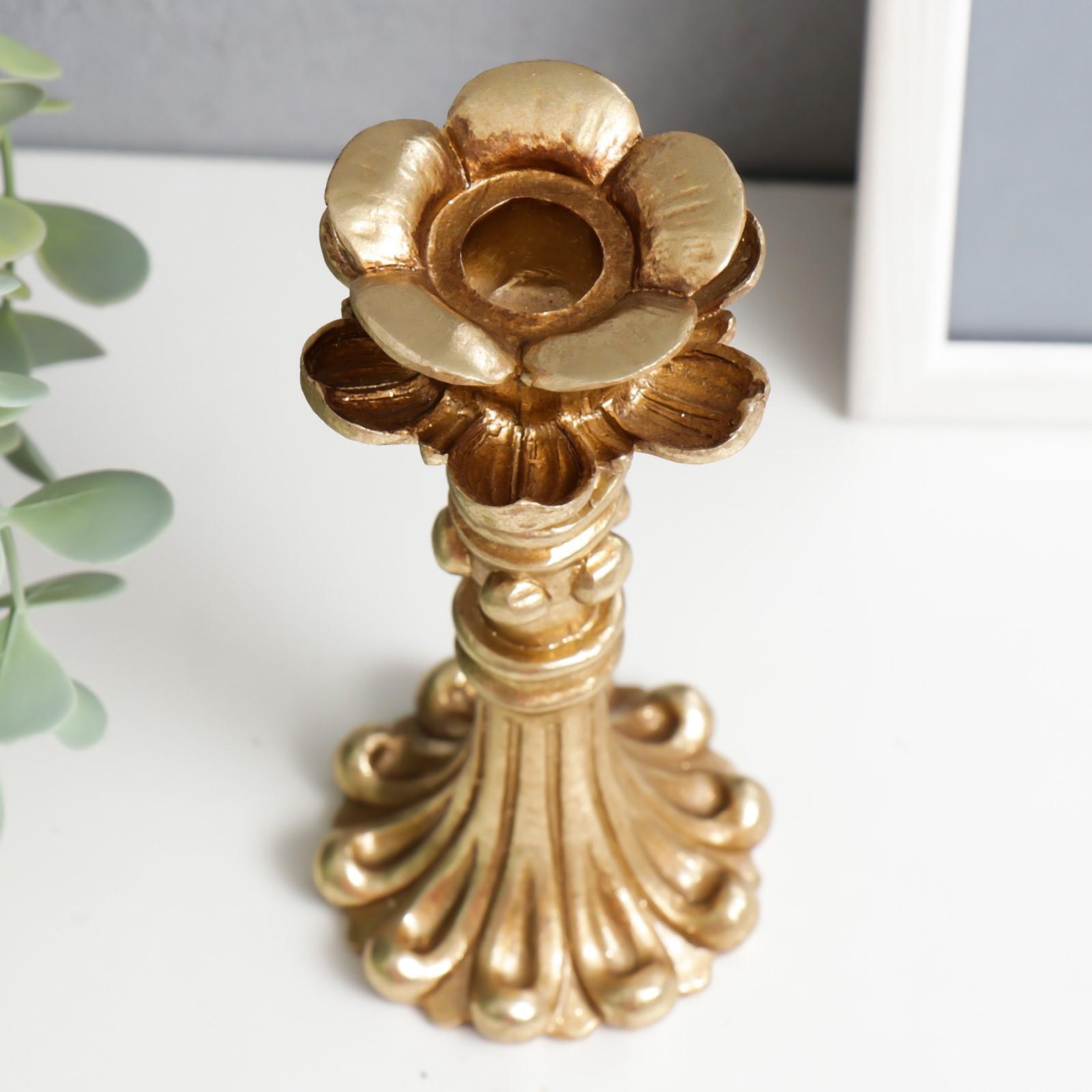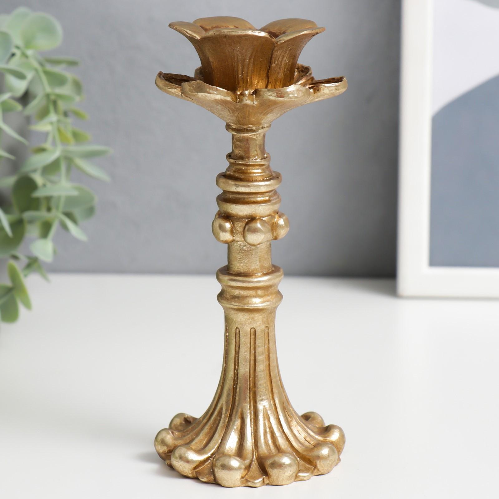 Подсвечник полистоун на 1 свечу "Ретро. Цветок" золото 16х6,5х6,5 см