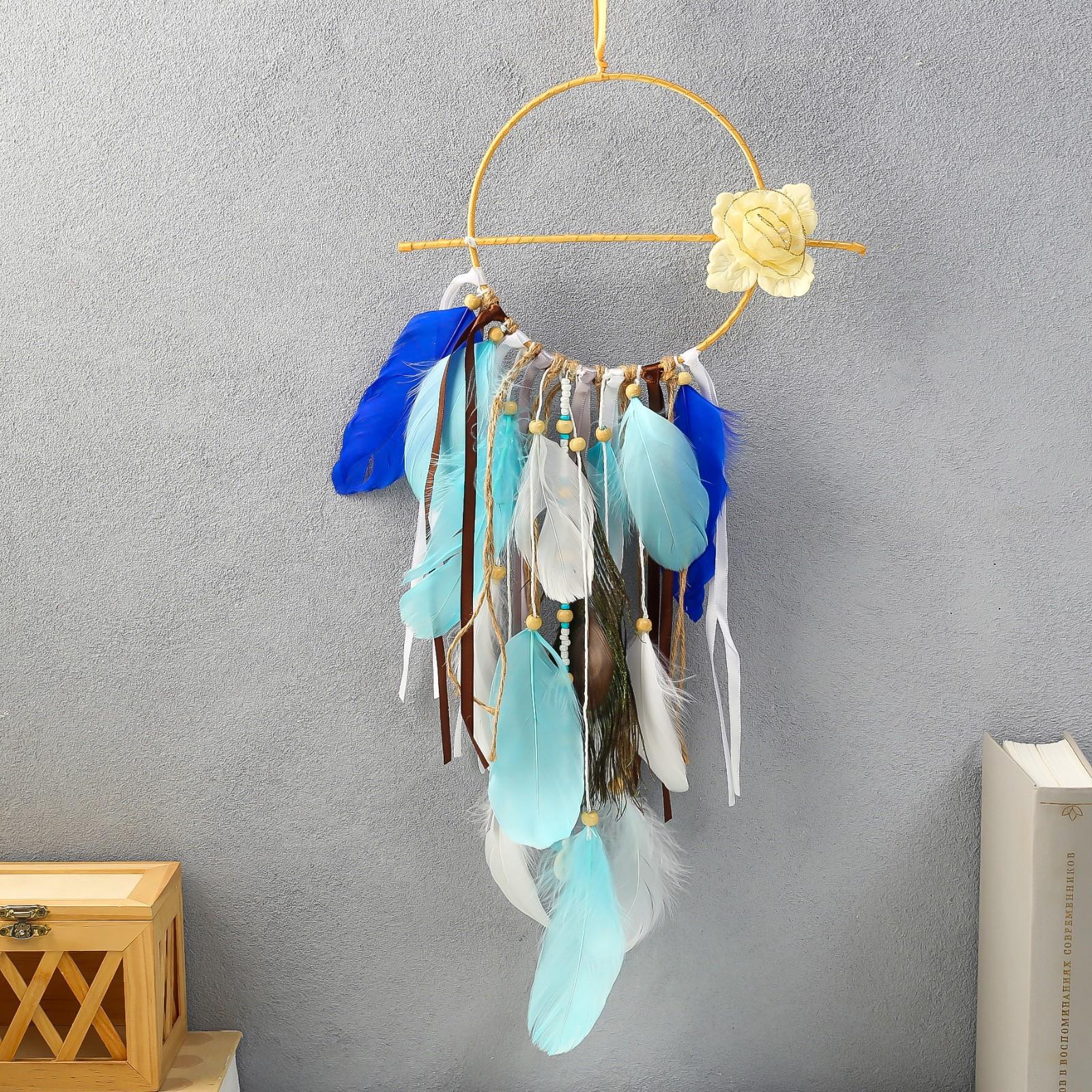 Ловец снов "Цветок и перо павлина" 60х15 см