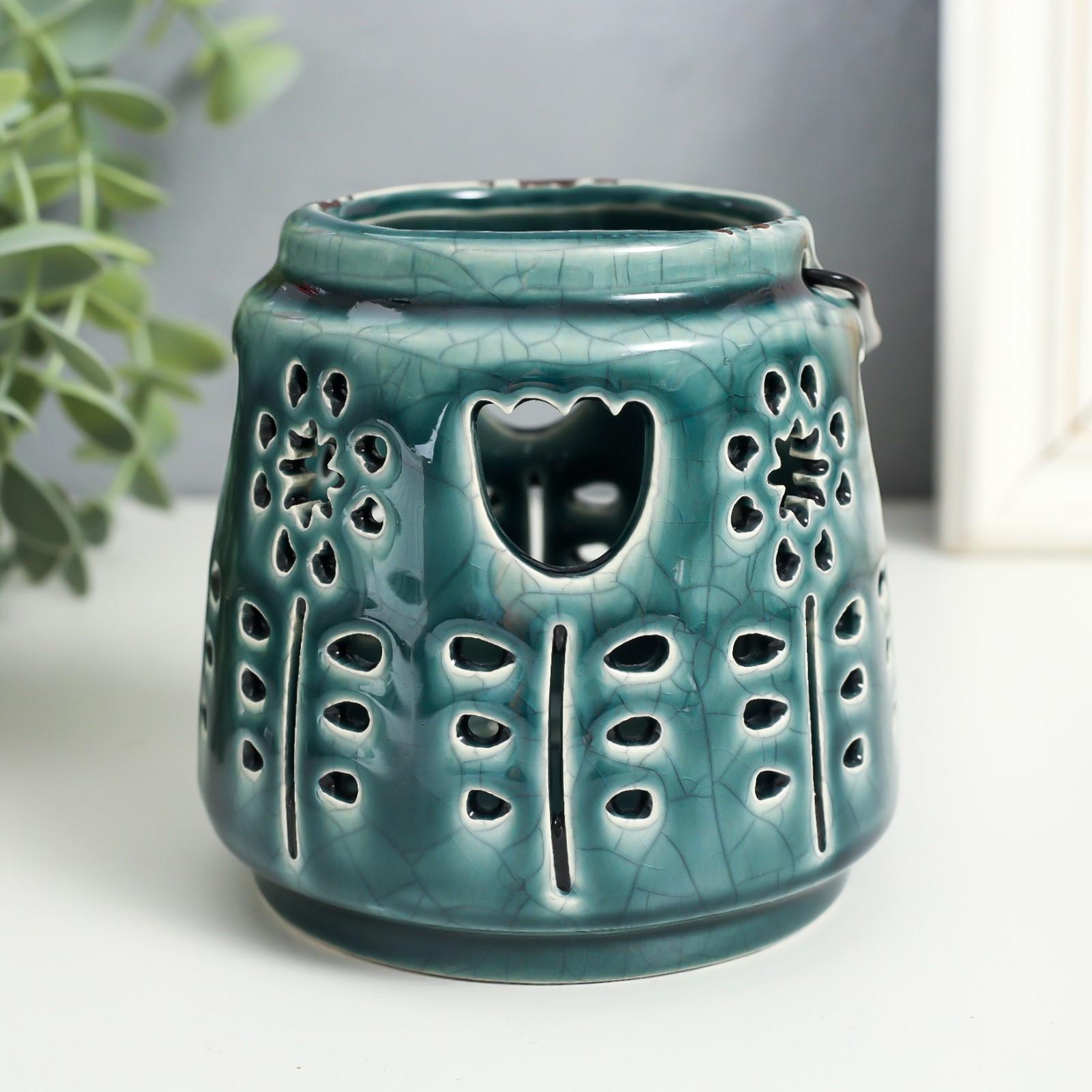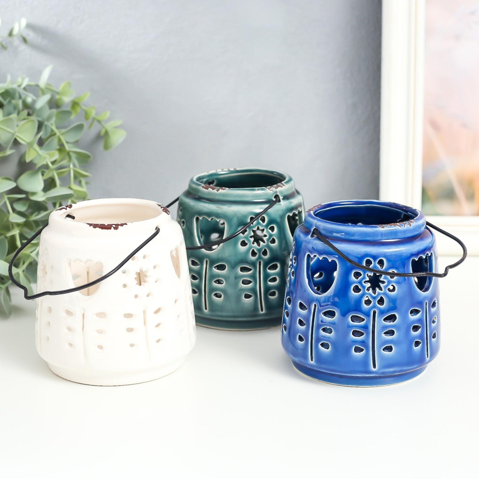 Подсвечник керамика на 1 свечу "Фонарь. Тюльпаны и одуванчики" МИКС 10х10х10 см