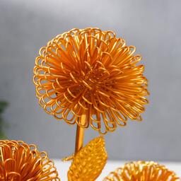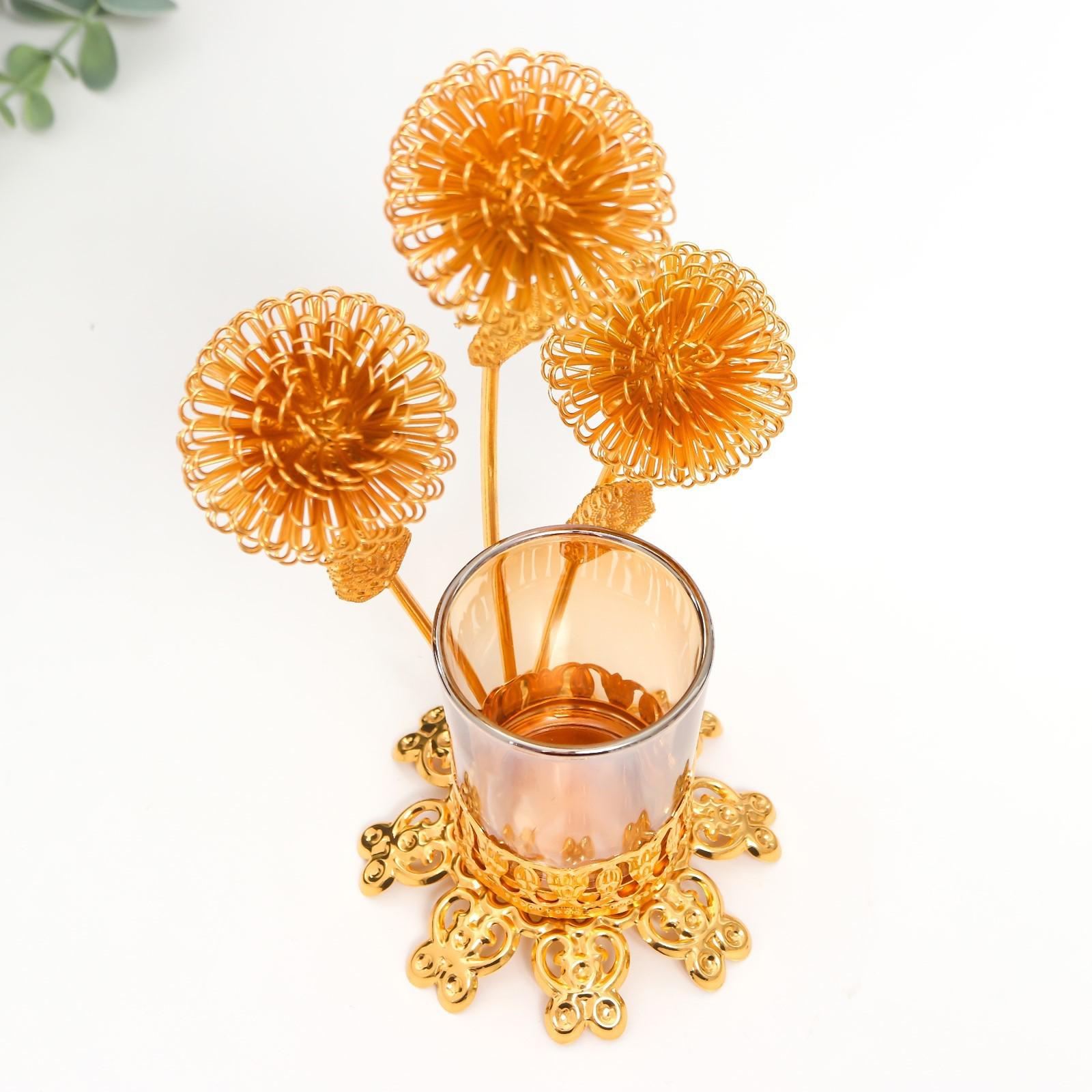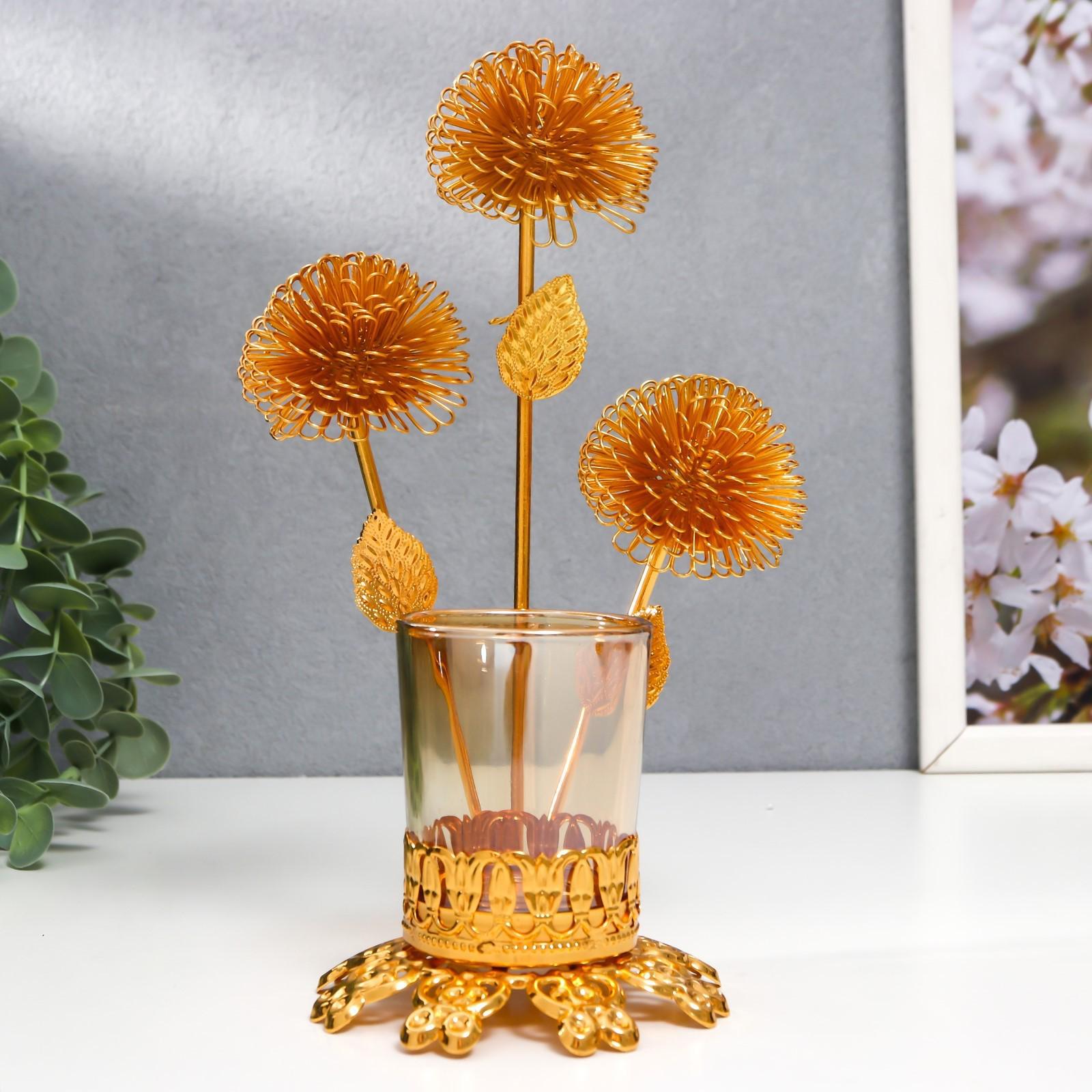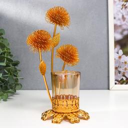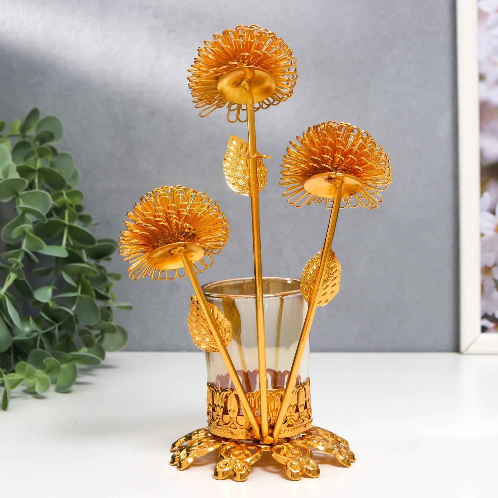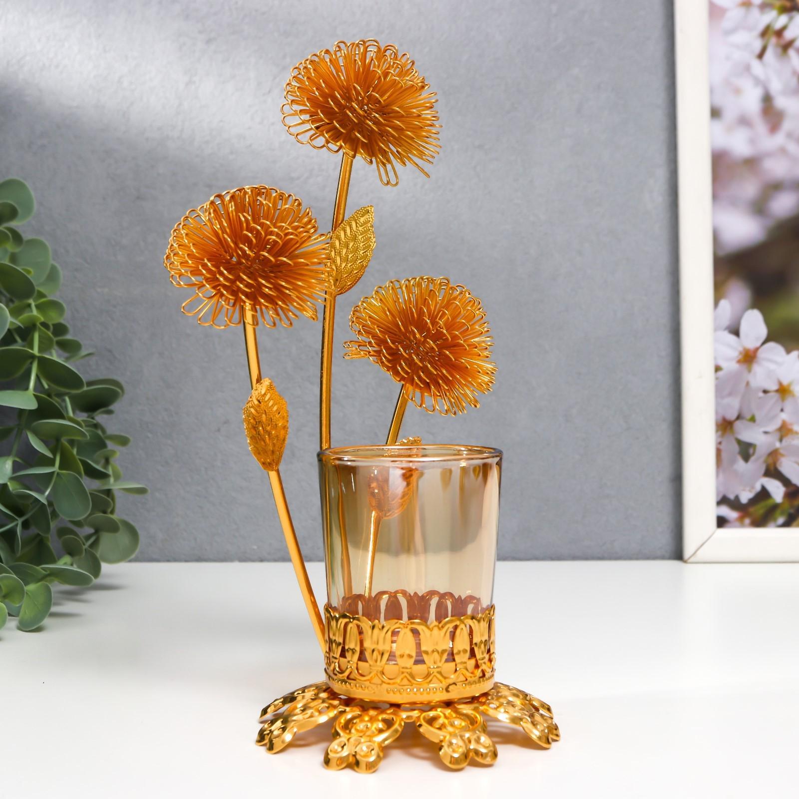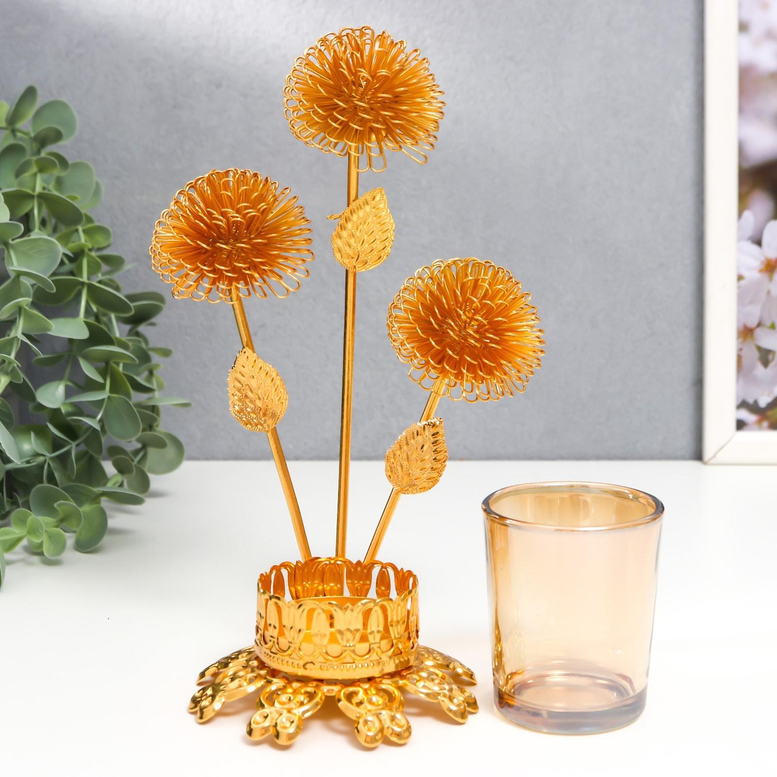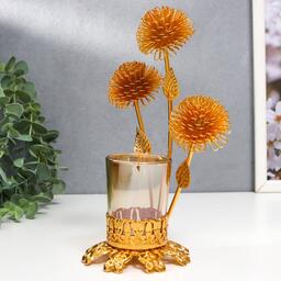 Подсвечник металл, стекло на 1 свечу "Золотые одуванчики" d-5 см 9,5х11х20 см