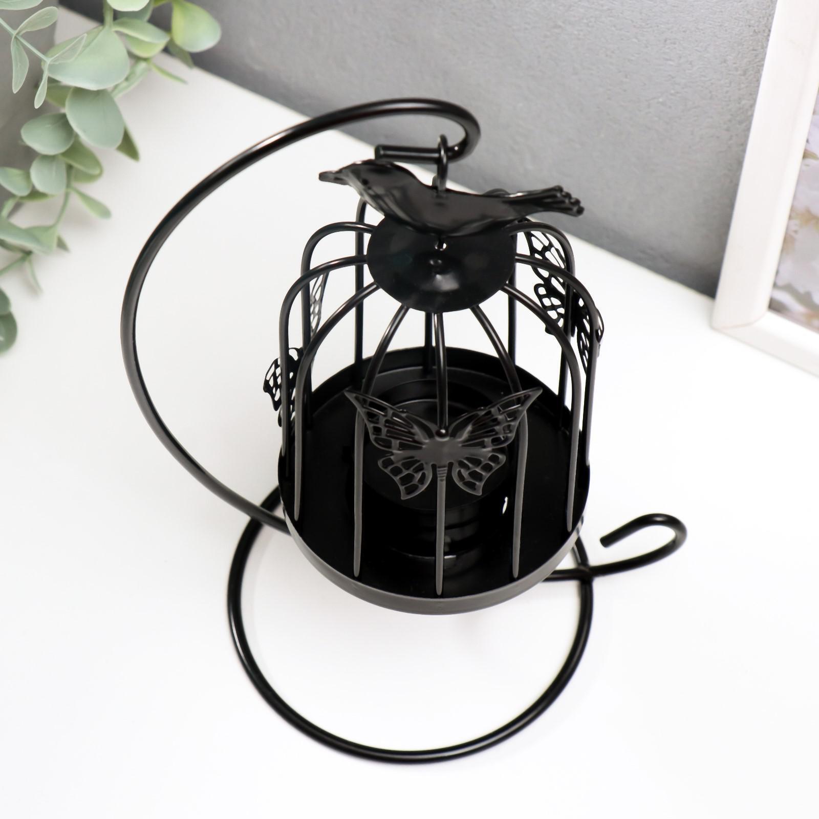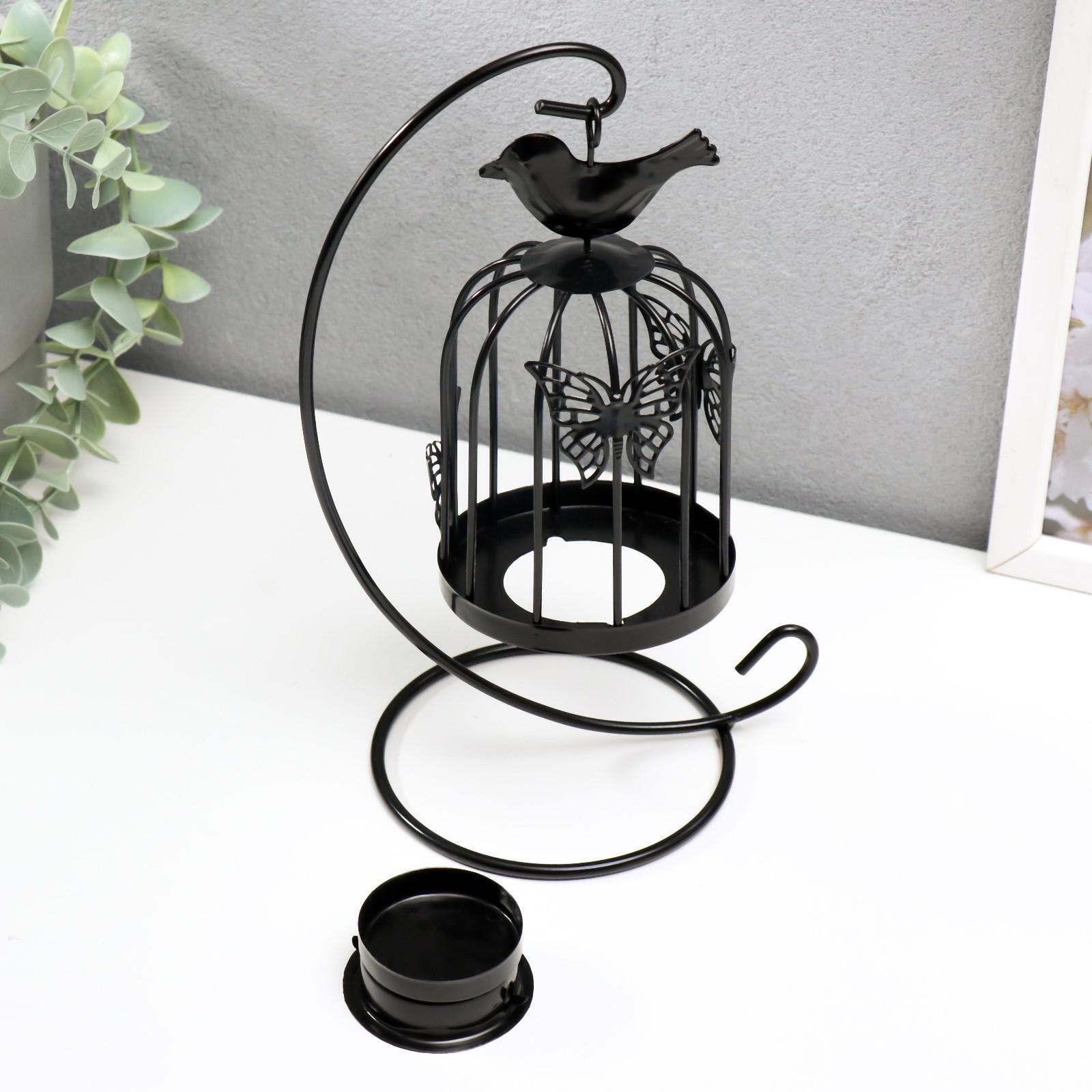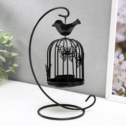Подсвечник металл "Клетка с птичкой" черный, 23х10х10 см