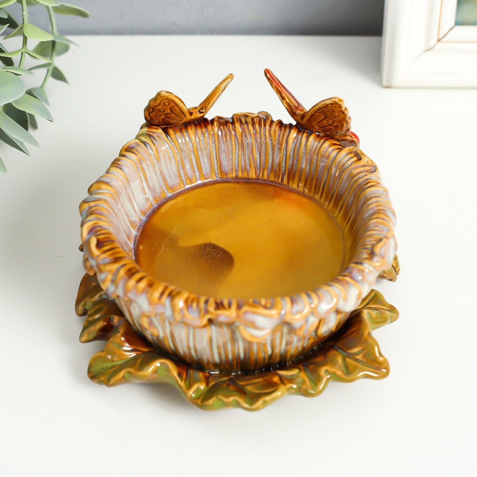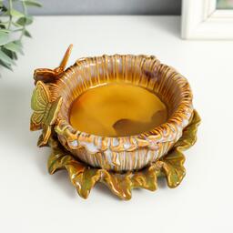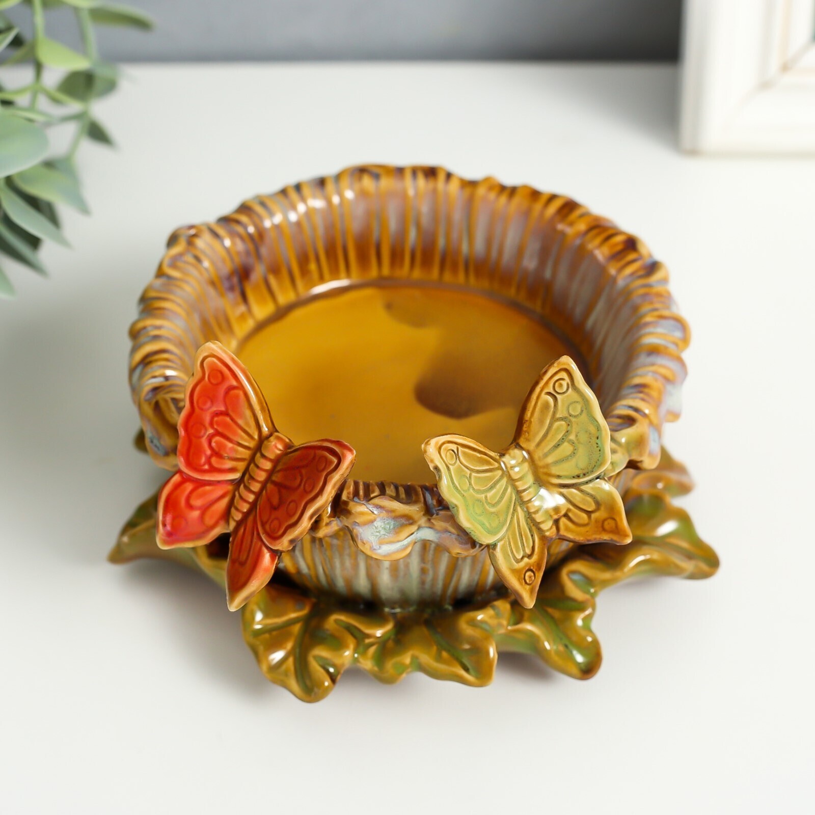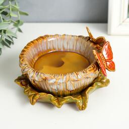 Подсвечник керамика на 1 свечу "Бабочки на цветке" d-8 см 14х14х8 см
