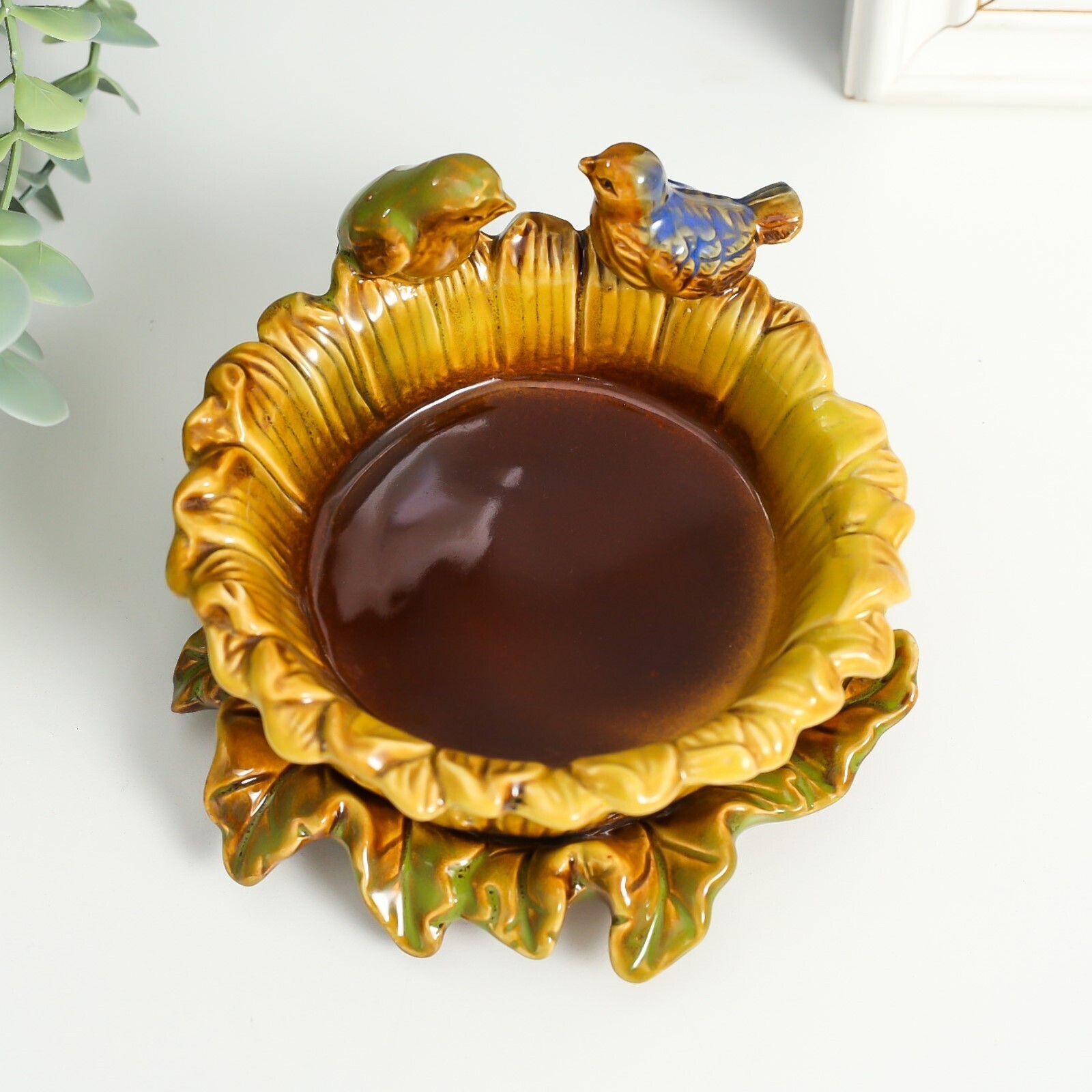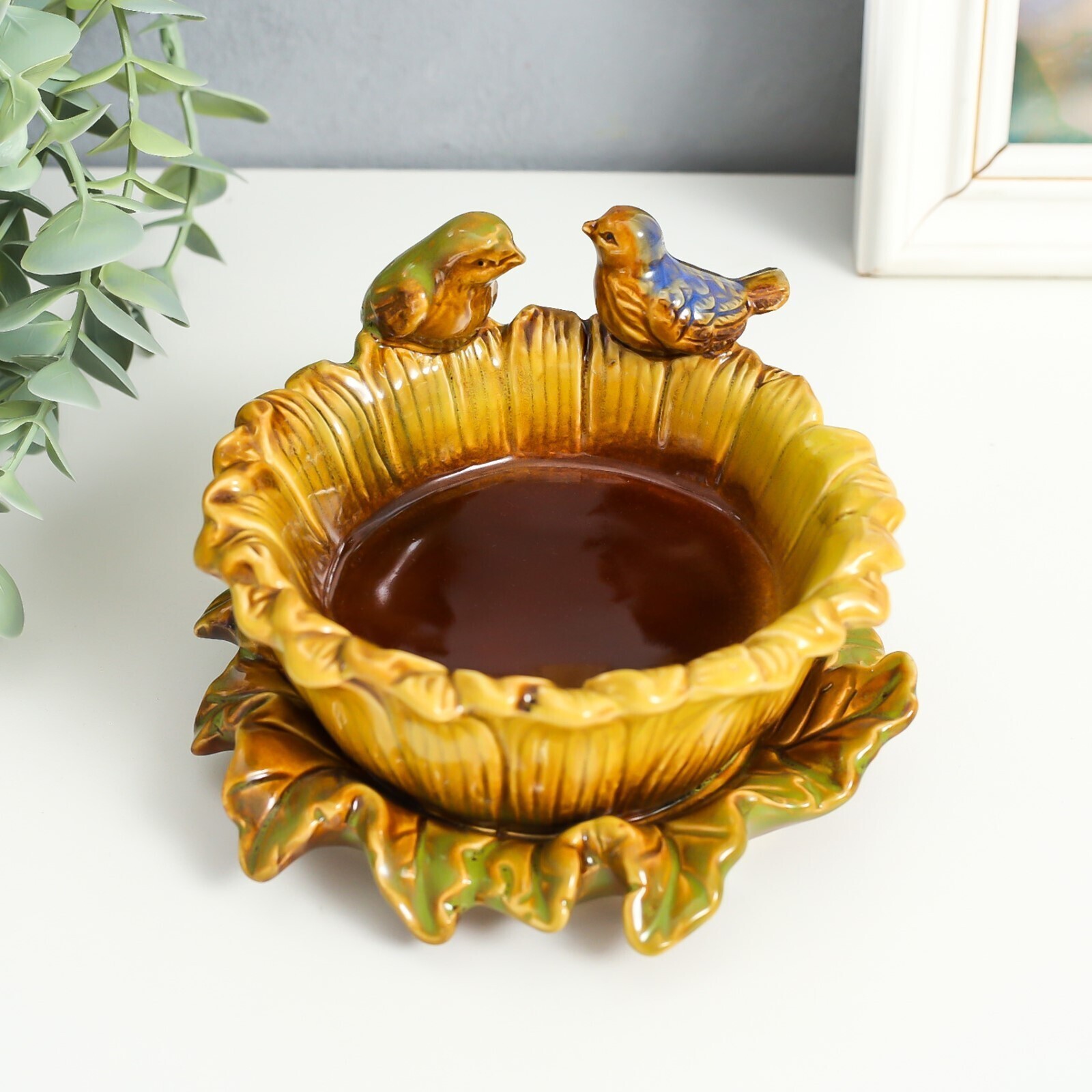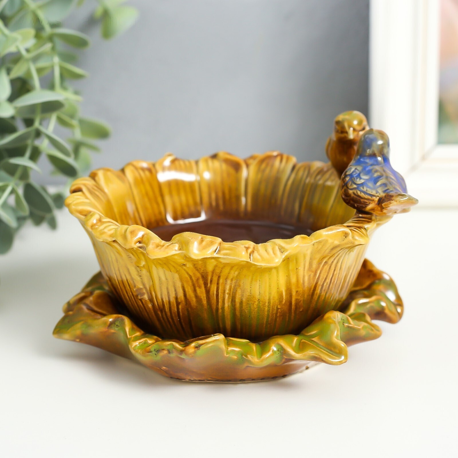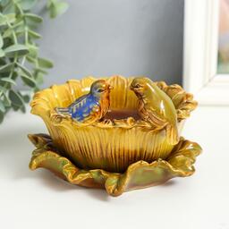 Подсвечник керамика на 1 свечу "Птички на цветке" d-8 см 14х14х8 см