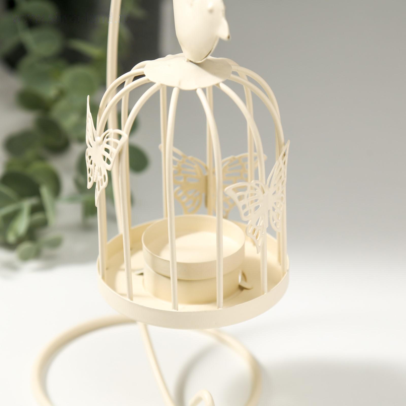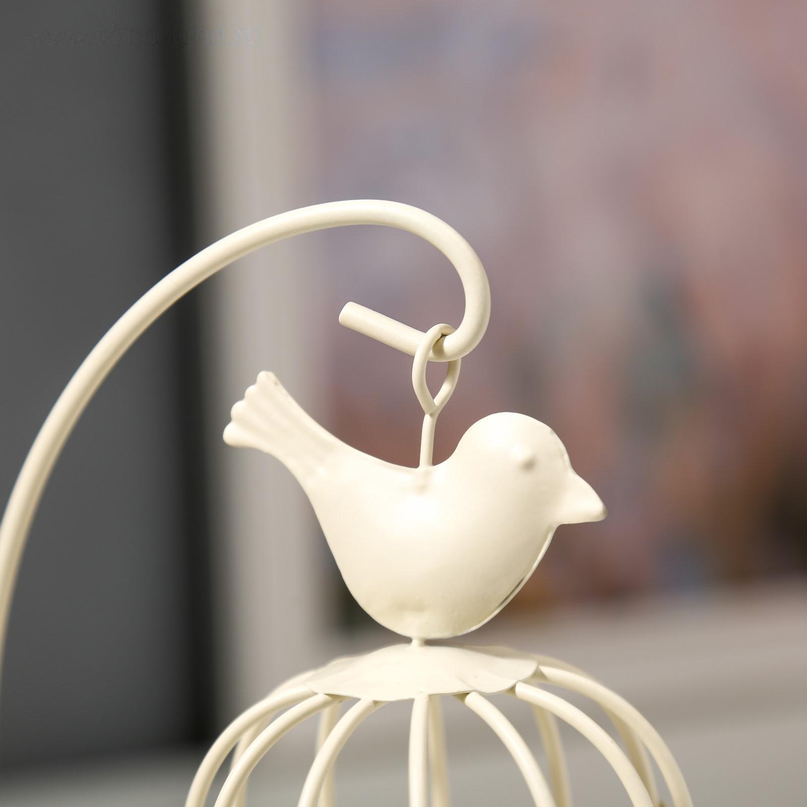 Подсвечник металл "Клетка с птичкой" белая, 23х10х10 см