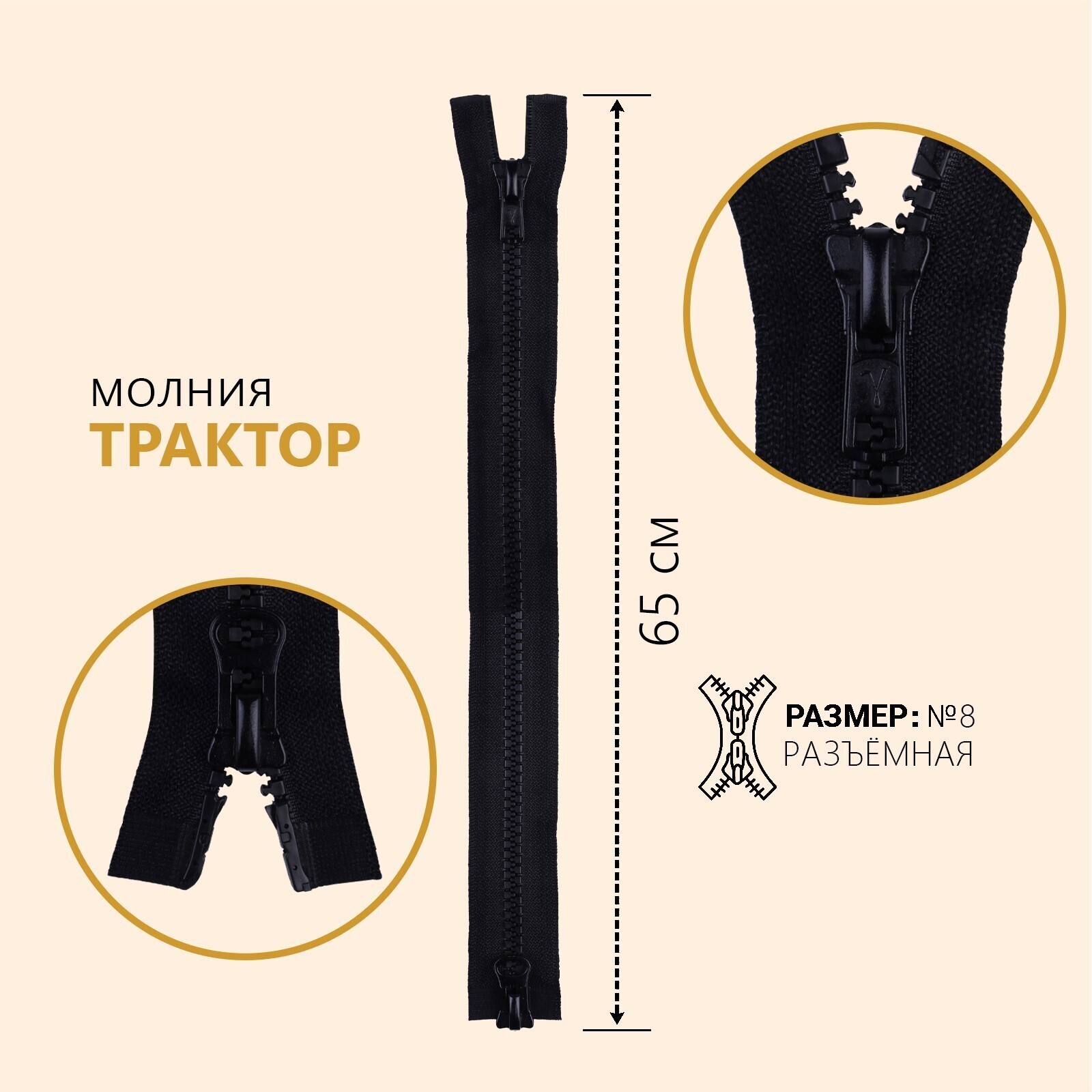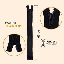 Молния «Трактор», №8, разъёмная, 2 бегунка, замок автомат, 65 см, цвет чёрный