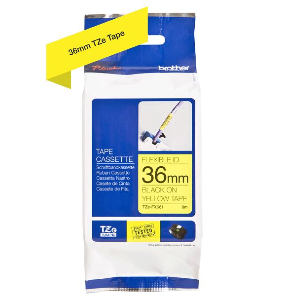• Серия материала этикеток 36-миллиметровая гибкая ламинированная идентификационная лента (черный на желтом фоне), 8 м.