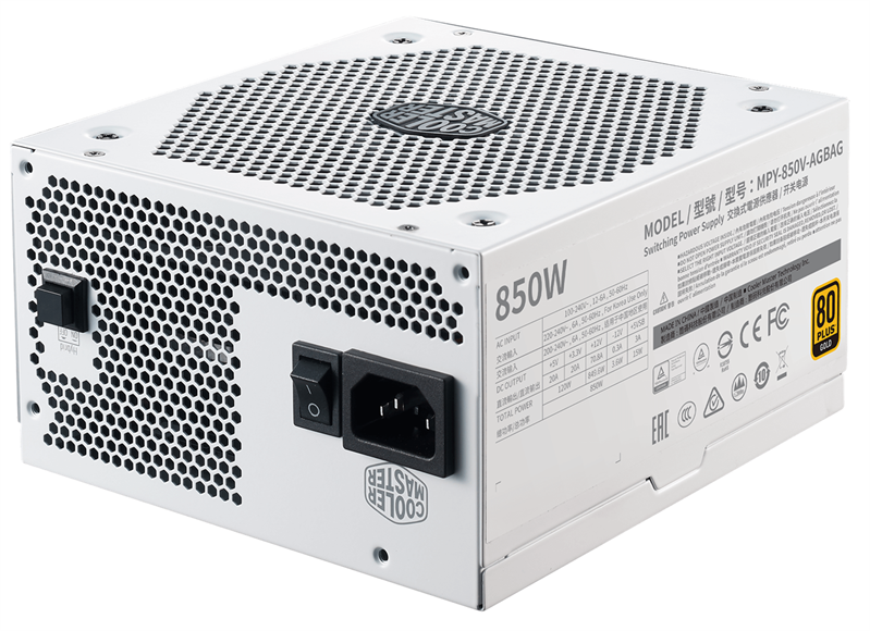 Cooler Master V850 Gold-V2 White Edition, 850W, ATX, 135mm, 24pin, 12xSATA, 6xPCI-E(6+2), APFC, Full Modular, 80+ Gold