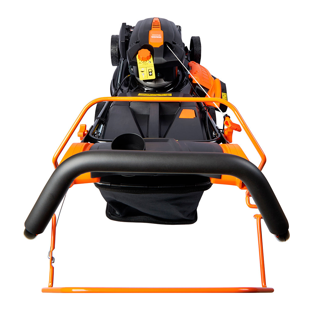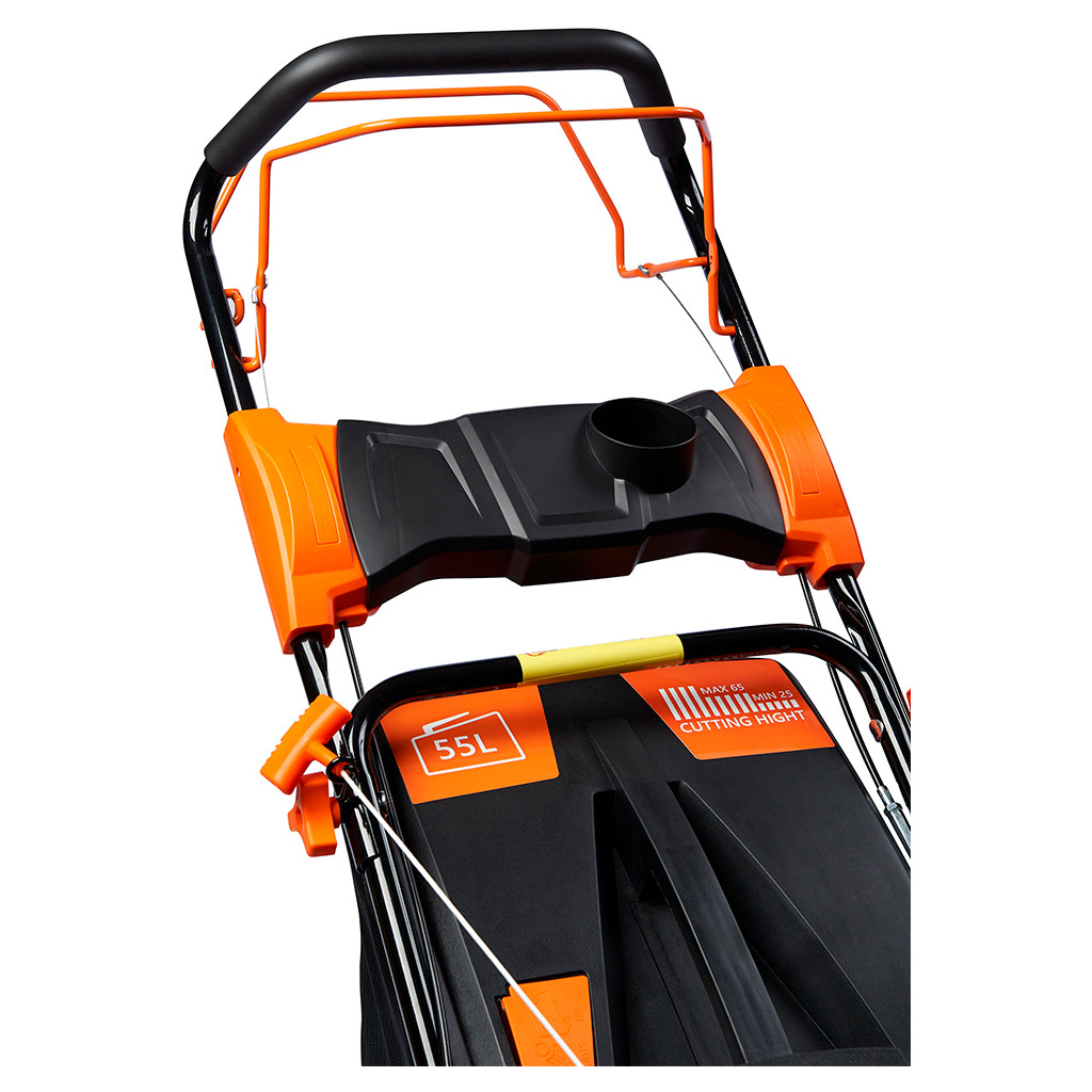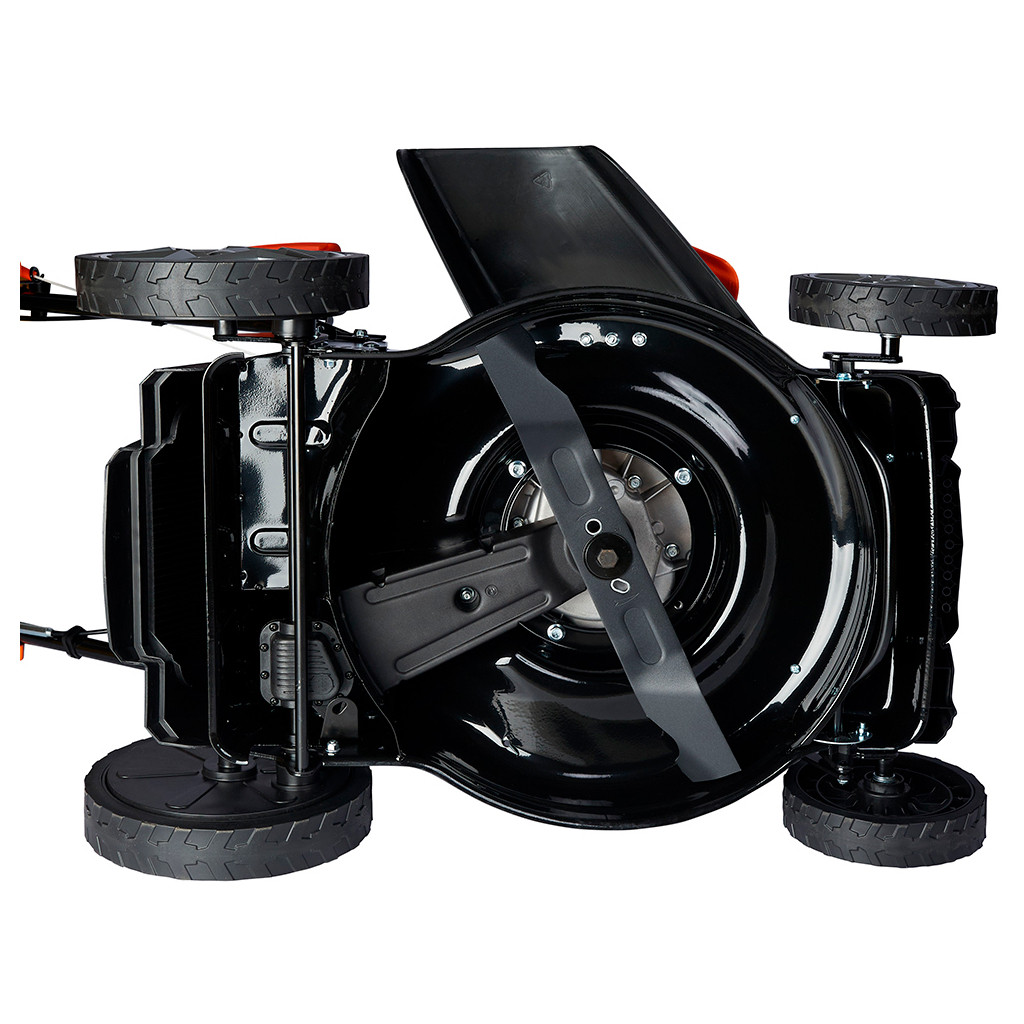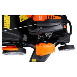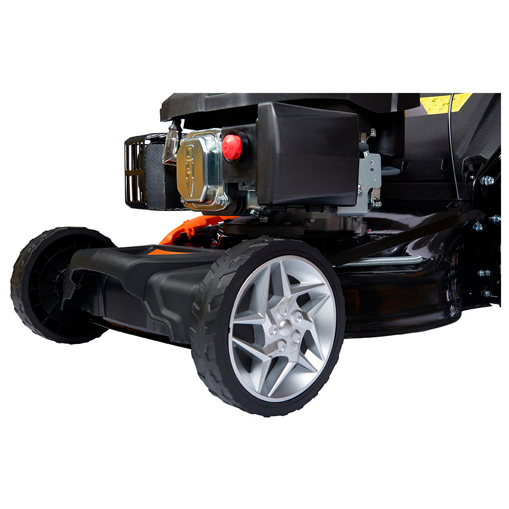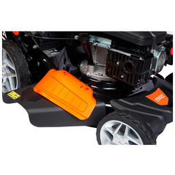 Газонокосарка призначена для скошення трави на площах до 1200 м². Має двигун потужністю 4 кВт, якого достатньо для впевненої роботи. Привід на задні колеса. Центральний важіль регулювання висоти косіння має 5 положень. Великі задні колеса допомагають зручніше долати нерівності рельєфу під час косіння. Колеса встановлені на підшипниках кочення. Можливість скошувати траву з викидом вбік чи назад - прискорює швидкість косіння за рахунок виключення необхідності очищення травозбірника. При косінні з травозбірником зручно орієнтуватися на індикатор наповнення травозбірника. Заглушка для мульчування дає можливість лишати скошену траву на газоні у вигляді мульчі.