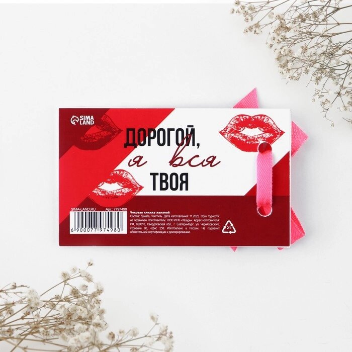 Чековая книжка желаний "Моему любимому", 10 х 6 см.
