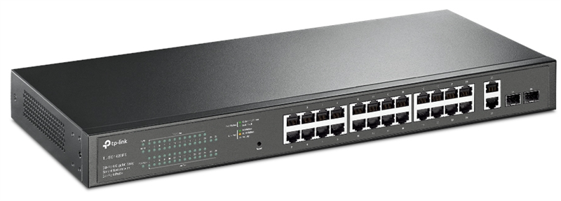 TP-Link TL-SG1428PE, 28-портовый Easy Smart коммутатор c 24 портами PoE+, 26 RJ45 портов 10/100/1000 Мбит/с и 2 независимых SFP-слота, поддержка 802.3af/at, PoE-бюджет 250Вт, 19"