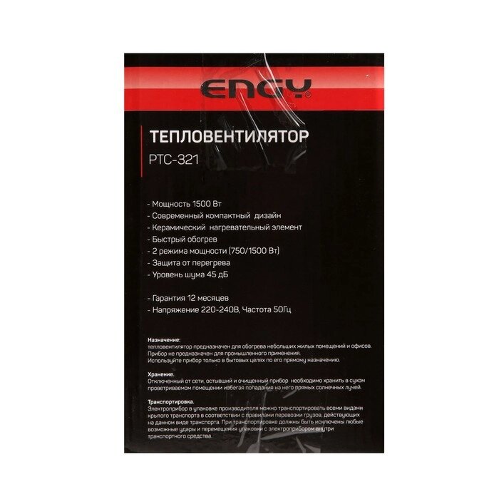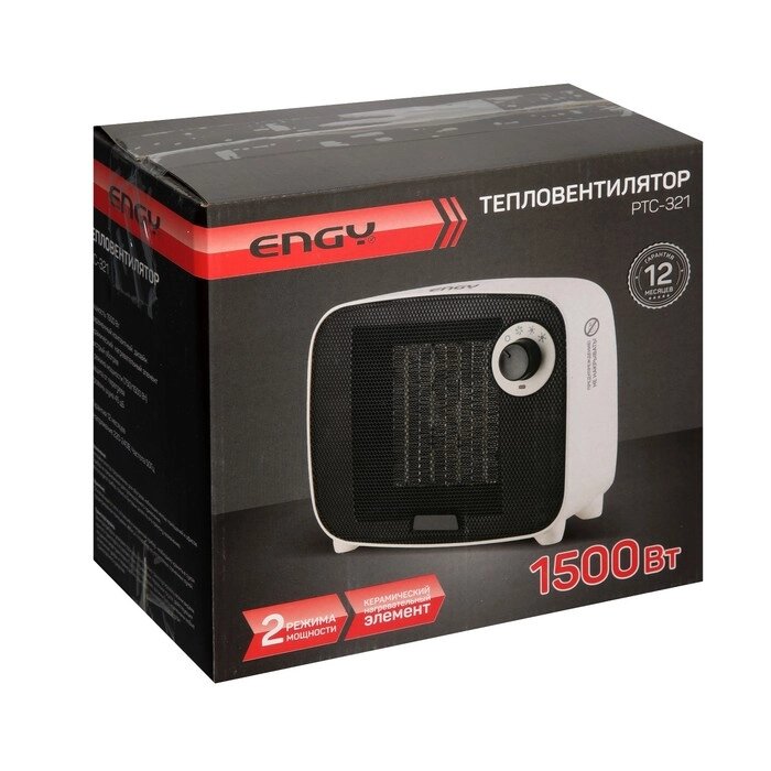 Тепловентилятор Engy PTC-321, керамический, настольный, 1500 Вт, 2 режима, чёрно-белый