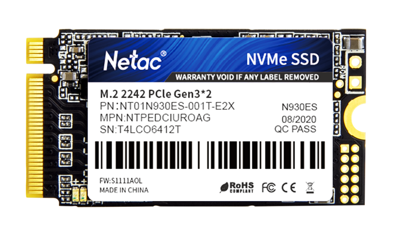 Netac SSD N930ES 1TB PCIe 3 x2 M.2 2242 NVMe 3D NAND, R/W up to 1650/1500MB/s, TBW 600TB, 3y wty