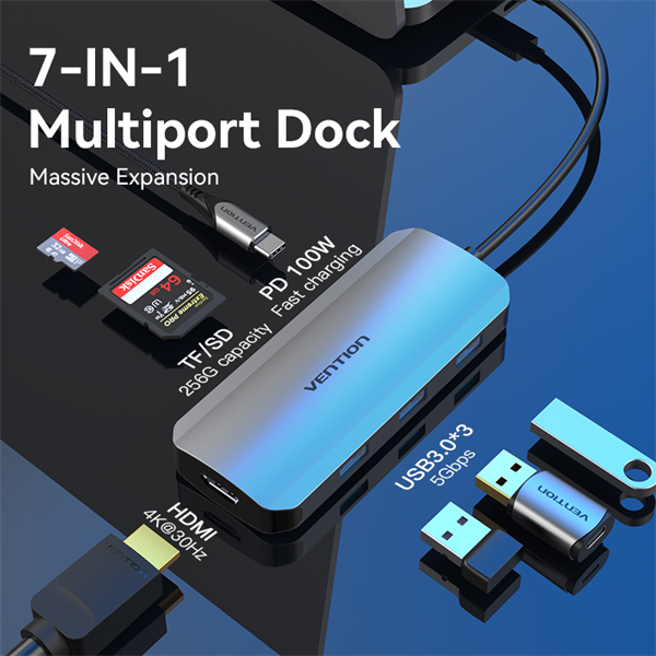 • Совместимость USB-C, 3хUSB3.0 (5Гб/с), 1хHDMI Female A (4K@30Гц), 1хTF Female, 1хSD Female, 1хPD Female (100Вт)