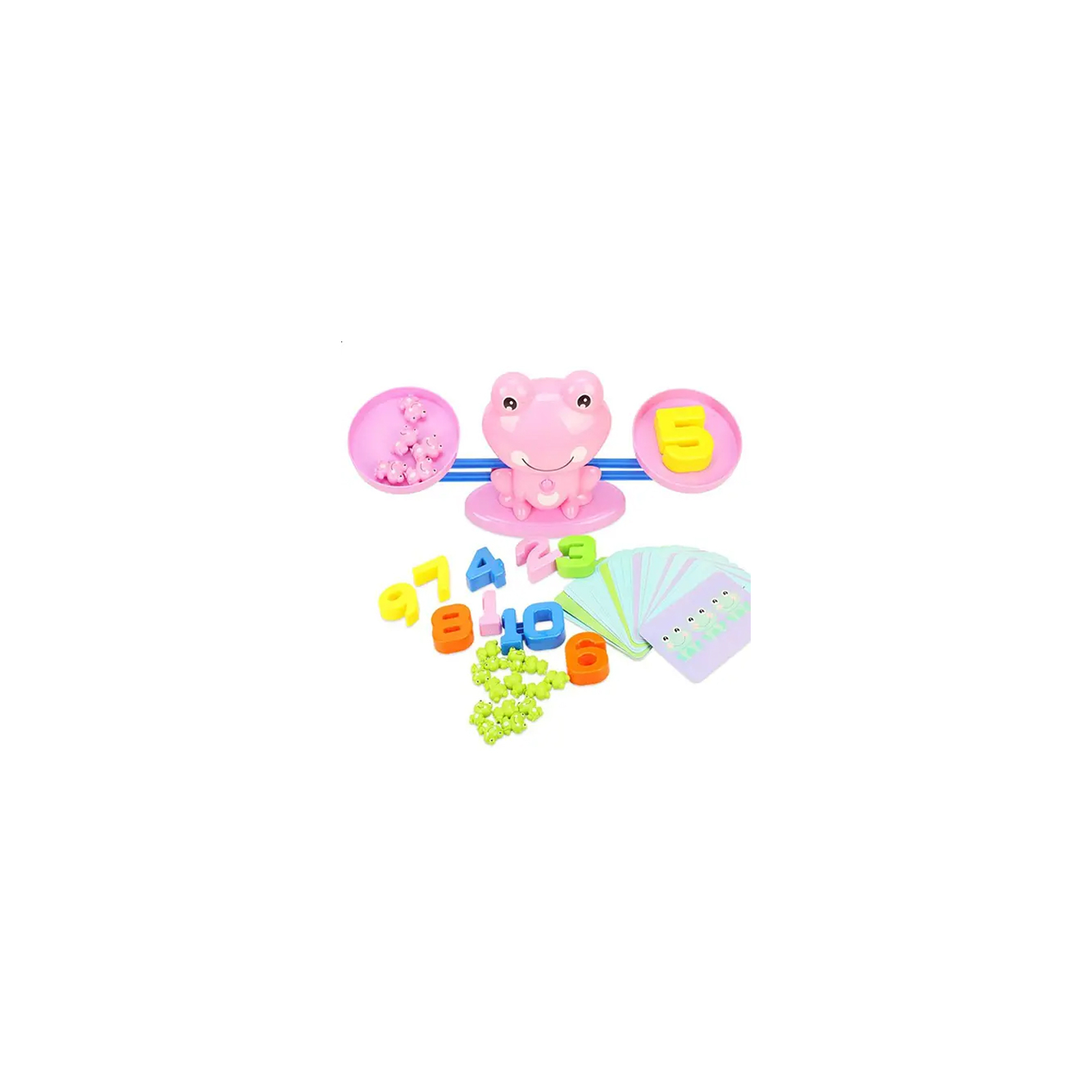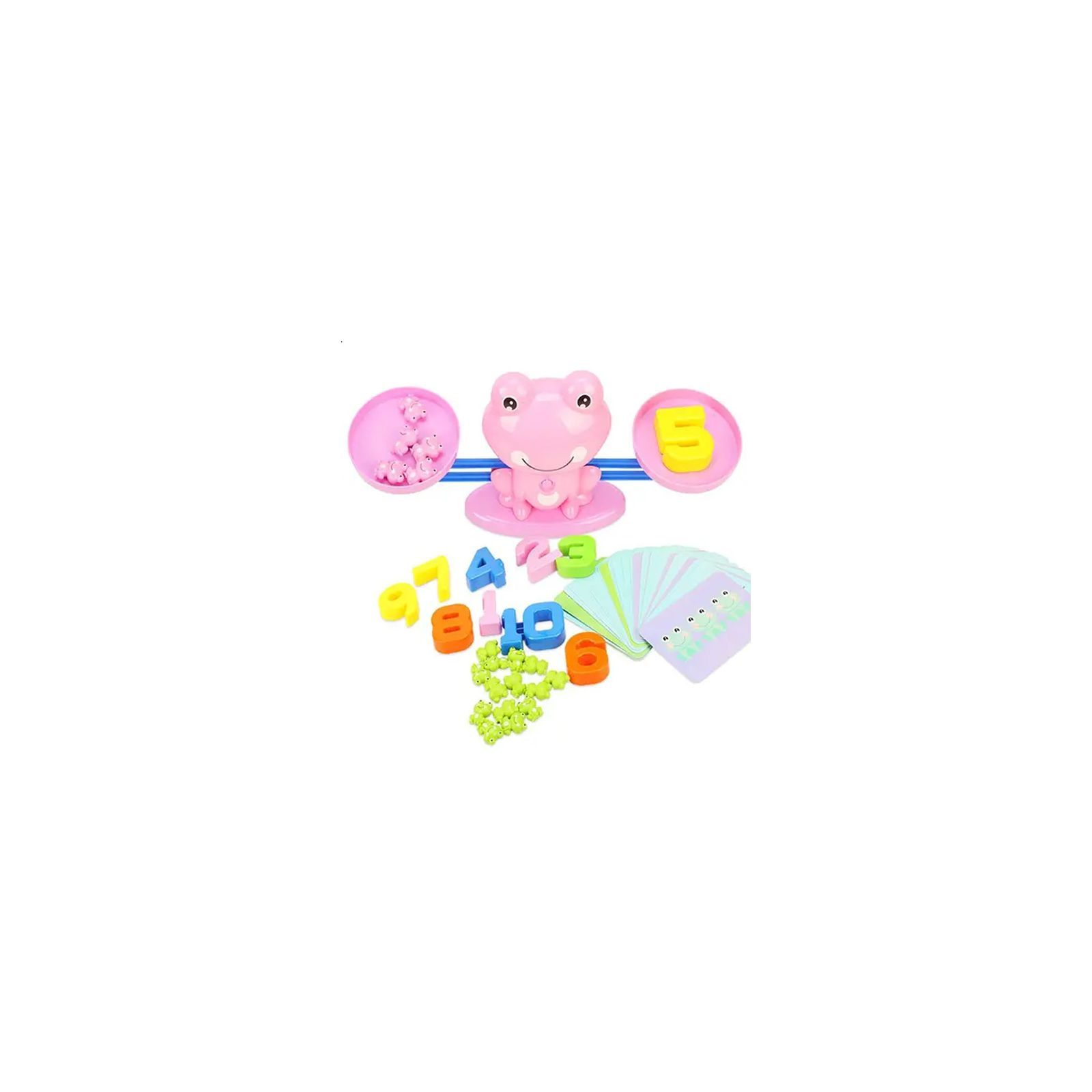 Кожна цифра має вагу, яка дорівнює вазі відповідної кількості фігурок жабенят. Для навчальних завдань у наборі є картки з прикладами та цифрами. Завдання в грі побудовані від простого до складного, таким чином, малюк поступово дізнаватиметься більше чисел і переходитиме до складніших прикладів.