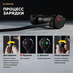 • Комплект поставки - Фонарь- Аккумулятор 18650- Магнитная USB-зарядка- Налобное крепление- Клипса- 2 запасных уплотнительных кольца- Документация