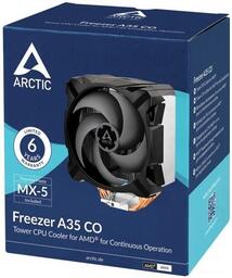 Arctic Freezer A35 CO — високопродуктивний процесорний кулер. Призначений для охолодження процесора AMD під сокет AM4. Для розсіювання тепла із радіатора використовується вентилятор. Вентилятор має широкі лопаті, які здатні захопити велику кількість повітря. За одну хвилину виріб виконує до 1800 обертів . Підключається пристрій за допомогою конектора 4 Pin . Виріб підійде для всіх вказаних сокетів.