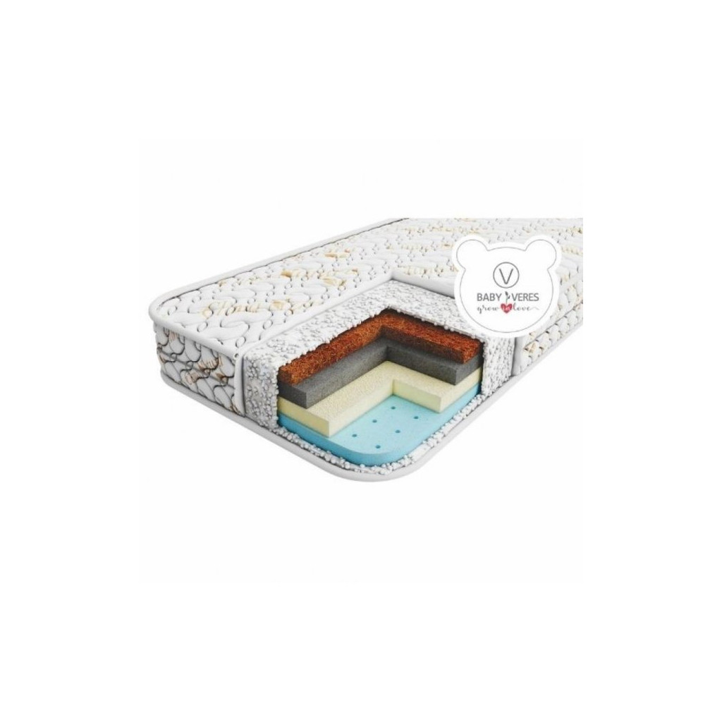 Матрац Верес «Gel Latex+ Organic » - двосторонній дитячий матрац на основі латексованої кокосової койри та натурального латексу з гелем. Матрац з різною жорсткістю сторін призначений для правильного формування скелетно-м'язової мускулатури у дитини. Більш жорстка сторона - з кокосовою койрою, м'яка сторона - з натурального латексу з гелем. Завдяки перфорованому латексу матрац відмінно "дихає" та вентилюється. Приймає форму тіла під час сну, підтримуючи хребет дитини в правильному положенні, здатний витримувати великий тиск, відмінно відновлює свою первинну форму.