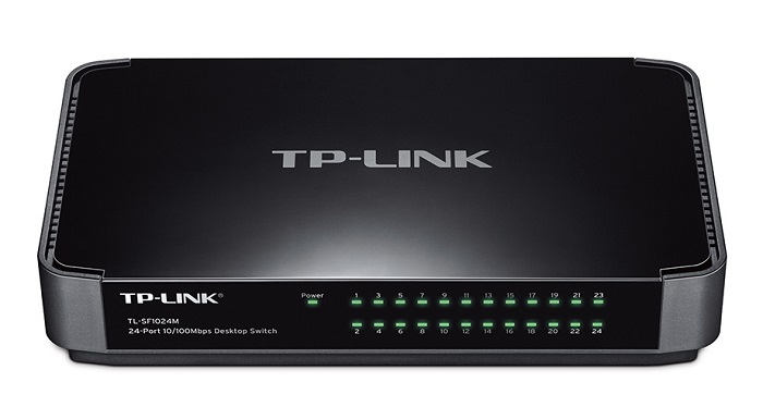 TP-Link TL-SF1024M, 24-портовый 10/100 Мбит/с настольный коммутатор, 24 порта 10/100 Мбит/с (RJ45), пластиковый корпус