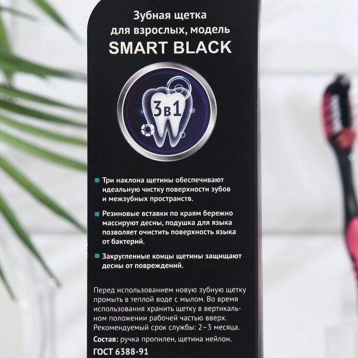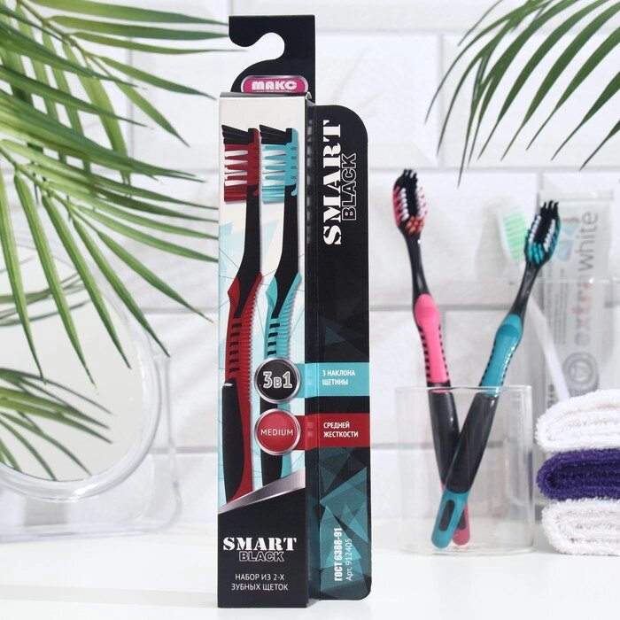 Зубная щётка "Смарт" Black средней жесткости, красный + зеленый, 2 шт.