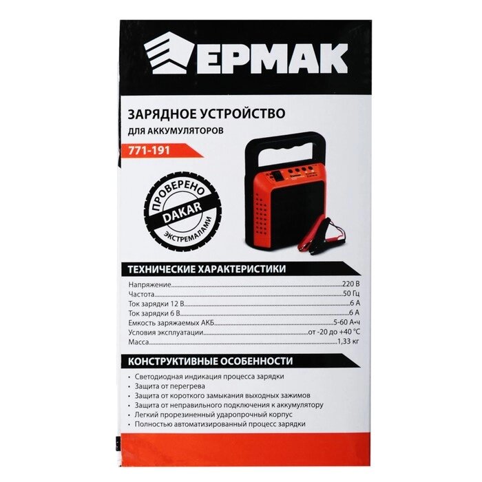 Зарядное устройство Ермак трансофрматорное, автомат, 6 А, 6/12 В