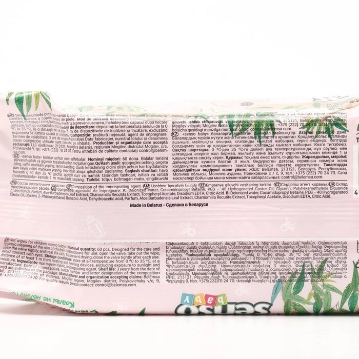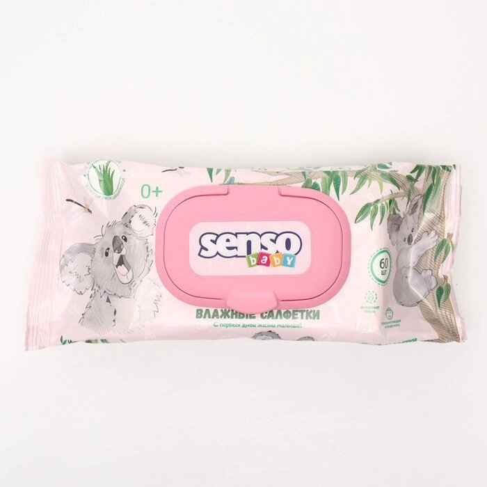 Салфетки влажные для детей, с маркировкой "SENSO BABY" КОАЛА, 60 шт