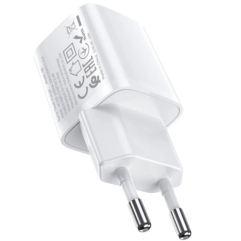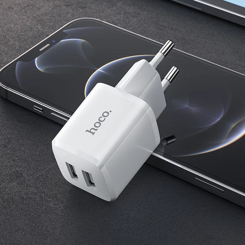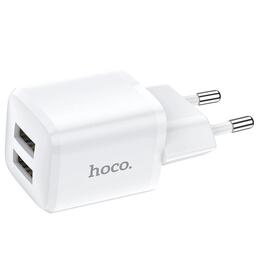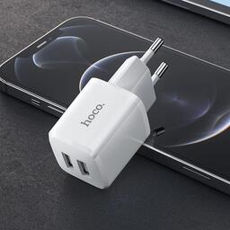 Зарядное устройство сетевое - блок питания HOCO N8, 2.4A, 2 USB, белый