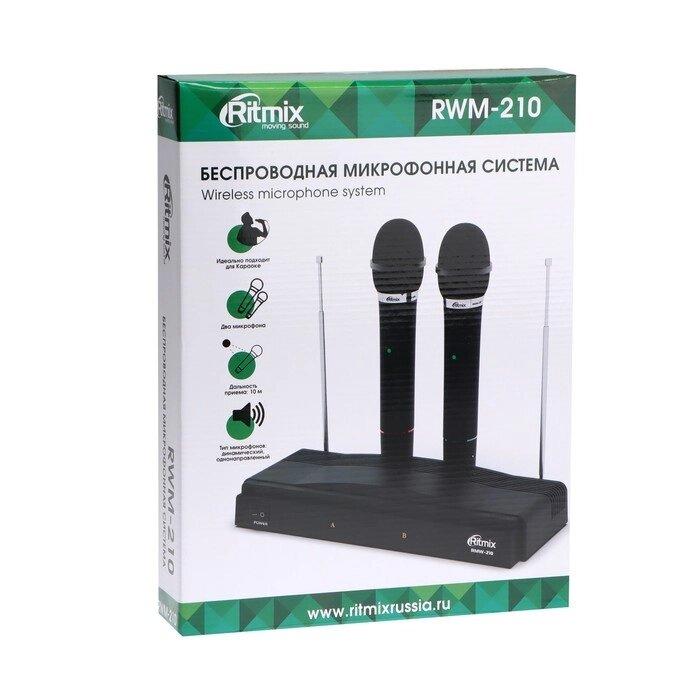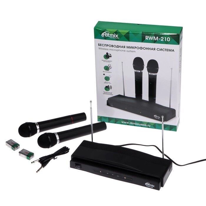 Беспроводная микрофонная система Ritmix RWM-210, 105 дБ, 100-10000 Гц, радиус до 10 м, черная