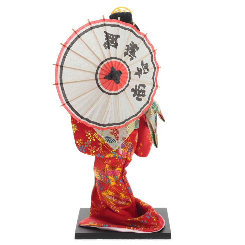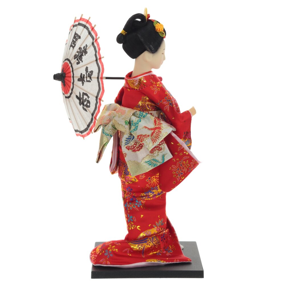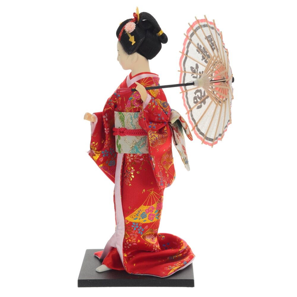 Гейша - символ японской культуры. Она одета в яркое кимоно розового цвета с золотистым поясом. У нее в руке традиционный японский зонтик из бумаги. Этот сувенир ручной работы будет отличным подарком для всех любителей восточного искусства.