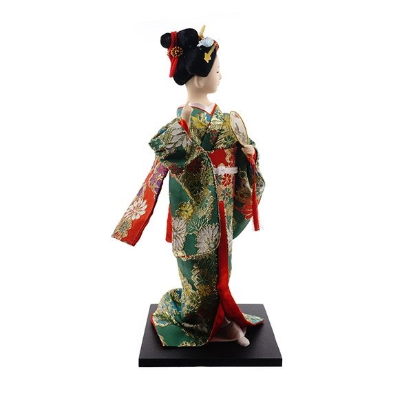 Гейша - символ японской культуры. Она одета в яркое кимоно зеленого цвета с красным поясом . У нее в руке традиционный японский веер. Этот сувенир ручной работы будет отличным подарком для всех любителей восточного искусства.