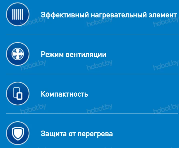 Применение тепловентиляторов для быстрого нагрева воздуха. Небольшие размеры устройства и достаточная мощь позволяют мгновенно обогреть небольшие помещения, такие как дачный домик, гараж, бытовая комната, домик на колесах и другие.