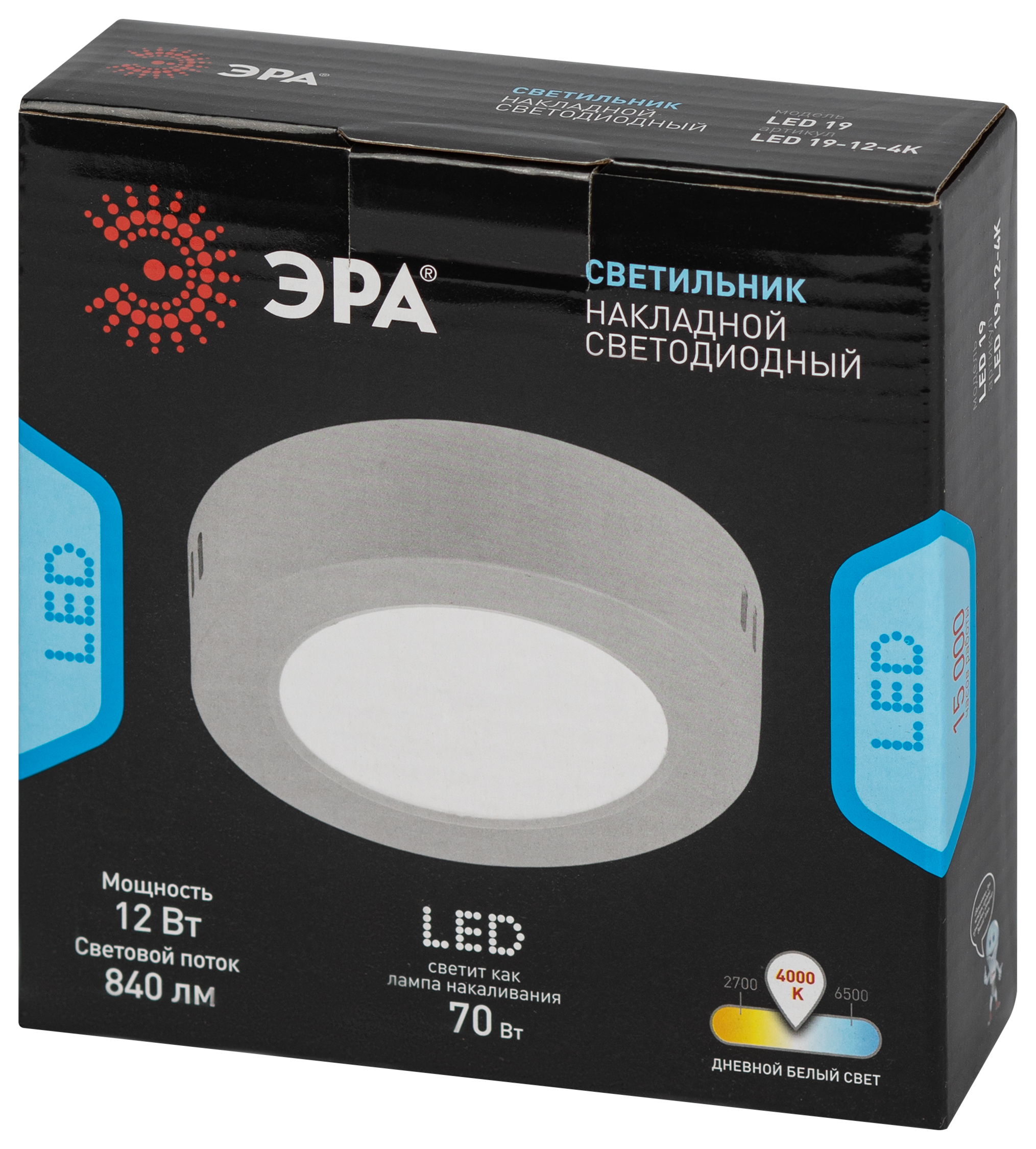 Светильник светодиодный ЭРА LED 19-12-4K накладной круглый 12Вт 4000К