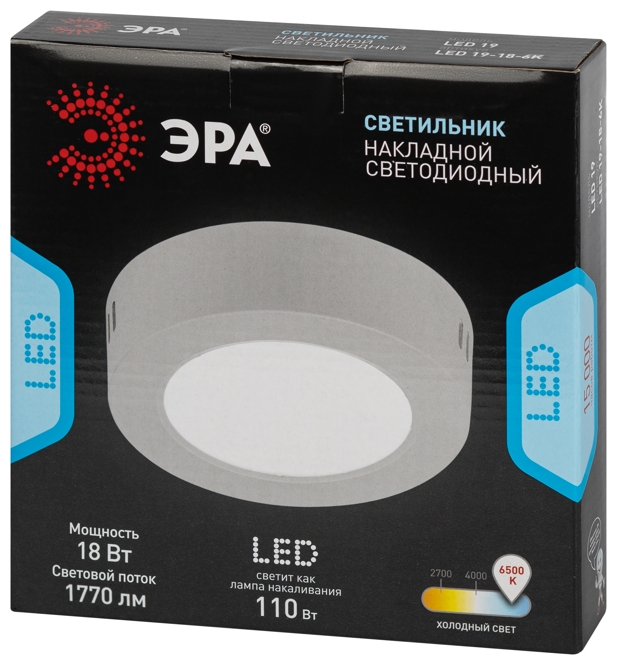 Светильник светодиодный ЭРА LED 19-18-6K накладной круглый 18Вт 6500К