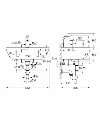 умывальник grohe 55 bau ceramic со смесителем 39440000+23342000+22039000+28947000+39471000